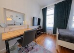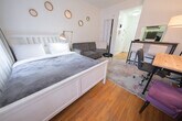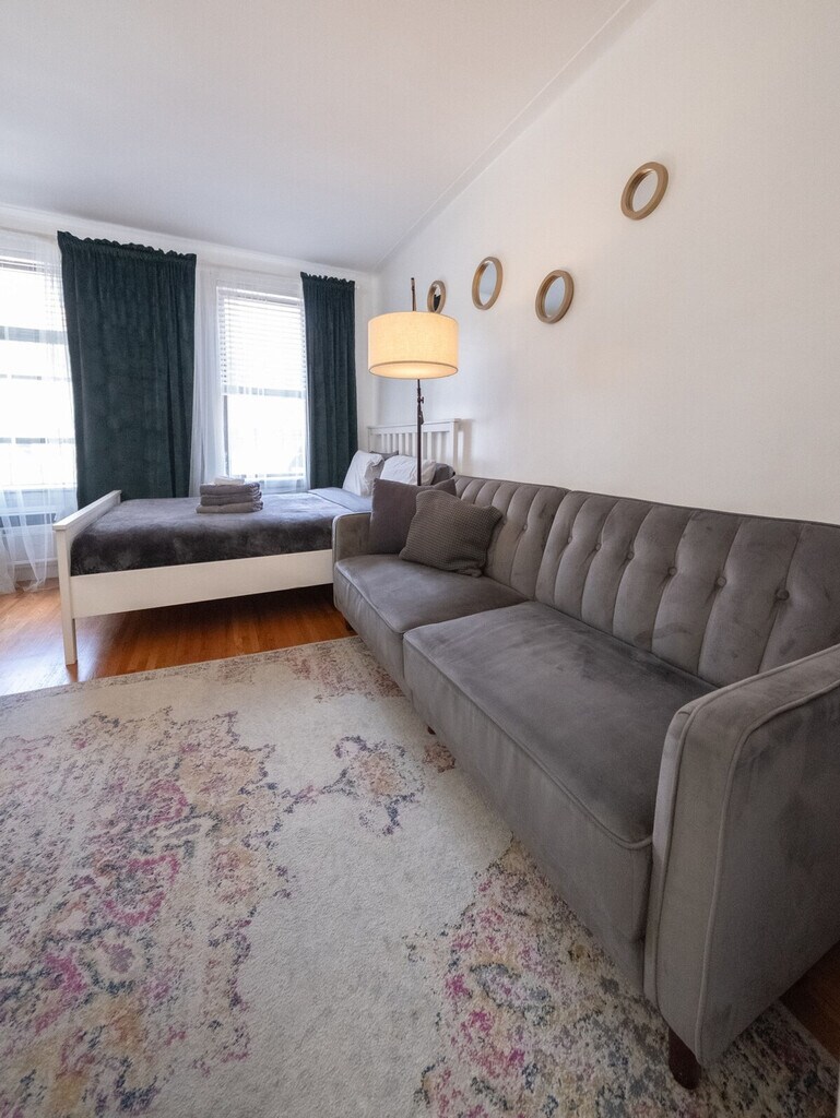 Feel at home in this charming and stylish fully furnished studio apartment located on the third floor of a walk-up building, just three flights up. This apartment offers all necessary amenities for a comfortable stay, including a queen-size bed and a sofa, a desk, a mirror, and air conditioning. The apartment is fully furnished and features a fully equipped kitchen with a large refrigerator, stove top, oven, coffee maker, toaster, microwave, and all the utensils and cutlery you might need during your stay. Enjoy the good-sized marble bathroom with both a shower and a bathtub. We also provide all bed linen and towels, as well as an iron and a hair dryer. Laundry facilities are available in the basement. Located in the Upper East Side, this apartment is surrounded by the trappings of wealth and high society. Enjoy proximity to Central Park, Madison Avenue's flagship boutiques, and some of the most fantastic museums in the country, including the Metropolitan Museum of Art and the Solomon R. Guggenheim Museum. Public transportation is easily accessible with the 6 Train on E 77th St & Lexington Ave and the M15 Bus to downtown at E 74th & 2nd Ave. Smoking inside or outside of the house will result in a penalty. Pets are not allowed. Luggage storage is not available, so please use a service like to store your luggage before check-in or after check-out. All guests must respect quiet hours ranging from 10 pm to 7 am. The apartment must be used for vacation purposes only, no commercial use. If the electric bill exceeds the average monthly bill of $100, the guest will be billed for overage. You cannot receive mail at this address, please consider opening a PO Box. Check-out time is at 11:00 AM, and all dishes should be placed in the kitchen sink and all trash in the trashcans before departure. Kindly note that a $350 refundable security deposit is required and will be collected directly by the partner after your booking is confirmed. The security deposit will be handled through direct communication with the partner and is not processed automatically. [SI]