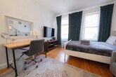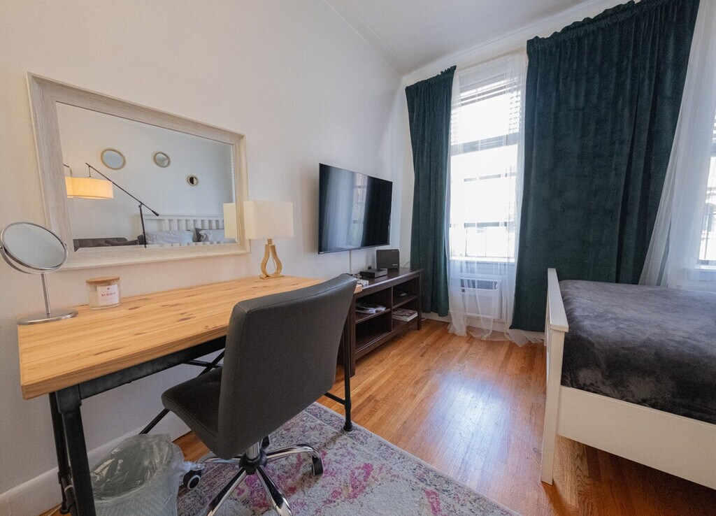 Feel at home in this charming and stylish apartment, perfectly situated just a few minutes' walk from Central Park and many renowned museums. Located in a walk-up building, this apartment is three flights up, offering a cozy retreat in the heart of the city. The apartment is fully furnished and features a fully equipped kitchen with a large refrigerator, stovetop, oven, coffee maker, toaster, microwave, and all necessary utensils and cutlery. Enjoy a good-sized marble bathroom with both a shower and a bathtub. The apartment includes a queen-size bed, sofa, desk, mirror, and AC. Laundry facilities with a washer and dryer are available in the basement. Street parking is available for free, but be mindful of alternate side parking rules to avoid tickets. Nestled in the Upper East Side, this apartment offers unbeatable access to the best of New York City. Just a 2-minute walk to the Q train line at 72nd Street and an 8-minute walk to the 6 train line at 77th Street, you're well-connected to the rest of the city. Explore the nearby Museum Mile, home to the Metropolitan Museum of Art, the Solomon R. Guggenheim Museum, and more. Enjoy the luxury shopping experience along Madison Avenue and the vibrant local dining scene. Smoking is strictly prohibited inside or outside the apartment, with a penalty of $500 for violations. Pets are not allowed. Please note that luggage storage is not available on-site, and guests are encouraged to use external services for luggage storage before check-in or after check-out. The apartment must be used for vacation purposes only, and all guests must respect quiet hours from 10 pm to 7 am. Check-out is required by 11:00 AM, and excessive cleaning charges may apply at the owner's discretion. Utilities, including Wi-Fi, heat, hot water, and gas/electricity, are included in the rental, with a minimum stay of 30 nights required. Kindly note that a $350 refundable security deposit is required and will be collected directly by the partner after your booking is confirmed. The security deposit will be handled through direct communication with the partner and is not processed automatically. [SI]