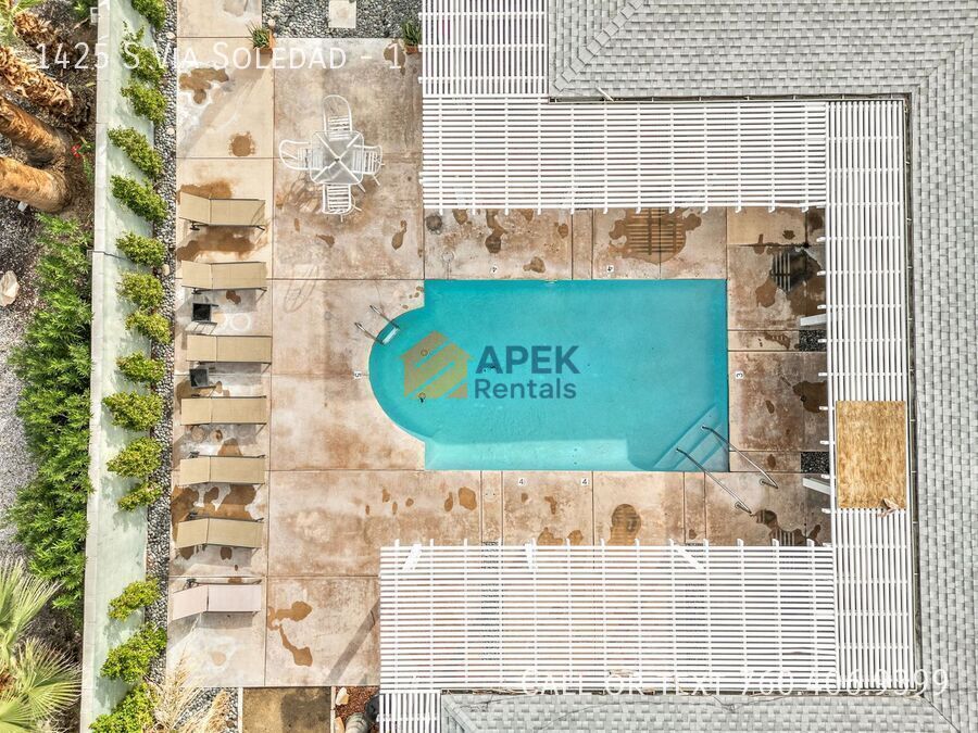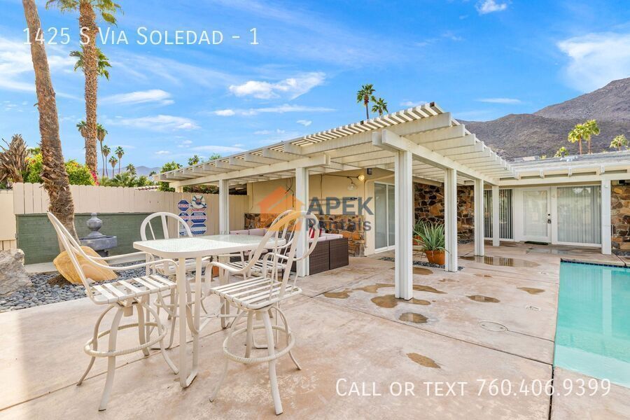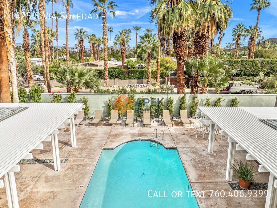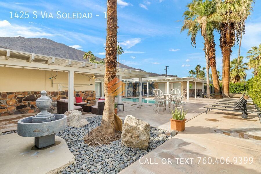 Welcome to this beautifully updated 2-bed, 2-bath mid-century modern home offering 1,050 sq ft of refined desert living. Completely renovated throughout, the residence features a granite-top kitchen with stainless steel appliances, all-new marble and stone flooring, and thoughtfully selected furnishings that create a clean, modern aesthetic. Located on a quiet residential street in highly sought-after South Palm Springs, this long-term rental provides the perfect balance of comfort and convenience. The home overlooks a peaceful central pool with soothing water features, creating a serene environment ideal for relaxation after a long day. With its prized location just minutes from downtown Palm Springs, residents can enjoy easy access to dining, shopping, entertainment, and local attractions—all while living in a calm, well-maintained community setting. We have 5 available units. We have fully-furnished, and non-furnished units available, and these are a rare long-term rental opportunity for those seeking modern style, tranquility, and unbeatable Palm Springs lifestyle. A/C Bbq Free Parking On Premises Gardening Hot Water Outdoor Seating (Furniture) Patio Or Balcony Trash Water