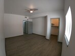 Apartment complex located far east right next to Pebble Hills high school offers a cozy two-bedroom unit located on downstairs floor. Kitchen is equipped with the refrigerator,gas stove,and dishwasher. Plenty of cabinet space and 6-shelf pantry for storage. Unit includes washer and dryer. Bedrooms include ceiling fans and windows for incoming natural light. Plenty of walk in closet space. White walls and grey tones throughout give this apartment a modern look,laminate wood floors all around for easy cleaning and well kept living space. Parking lot included behind building keeps your vehicle safe.