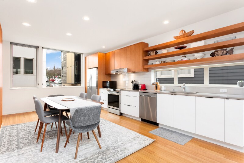 Experience the contemporary design and luxury comfort of this gorgeous central 3-bedroom 2-bathroom townhouse, just a few minutes away from top restaurants, shopping malls, parks, attractions, and landmarks. To top it all off, enjoy the private rooftop patio featuring a relaxing spot to admire the city views. The townhouse spreads over three spacious levels with a functional rooftop patio offering a stunning view of South Seattle. The entire home is furnished with state-of-the-art amenities and tasteful decoration, highlighted by rays of healthy sunlight during the day and cozy lighting in the evening. Exquisite hardwood floors add to the warm and stylish ambiance. Step into the open floor-plan living area with polished hardwood floors, where you will find everything needed to create fun, memorable moments during your visit to Seattle. The living area features a comfortable L-shaped sofa with pillows, a smart TV, board games, a reading nook with a cozy sofa chair and reading lamp, and a coffee table. The contemporary open floor plan is designed so you don’t miss a single fun moment. State-of-the-art stainless steel appliances and a large countertop will allow you to prepare homemade delicacies with ease. The dining area offers an ideal setting for a delicious meal with a dining table seating six, plus two additional folding chairs. The townhouse offers three relaxing bedrooms with queen-size beds, premium pillows, linens, and sheets, closets with hangers and shelves, and nightstands with reading lamps. Additional sleeping accommodations include a twin air mattress, a twin cot, and a pack and play. The townhouse features two full bathrooms with a bathtub and shower, a walk-in shower, a vanity, a mirror, a toilet, towels, a hairdryer, and essential toiletries. The best viewpoint of the home is the rooftop patio, offering relaxing lounge areas where you can sit back and relax while taking in city views. Free parking is available for one compact car, but it is not suitable for large SUVs or trucks. The Central District neighborhood is next door to the SODO neighborhood, home to Lumen Field and T-Mobile Park. The townhome is just minutes away from these large stadiums by car or bus. Nearby attractions include T-Mobile Park, Lumen Field, Downtown Seattle, Seattle Art Museum, Seattle Aquarium, Pike Place Market, Museum of Pop Culture, Chihuly Garden and Glass, Space Needle, Woodland Park Zoo, and Seattle-Tacoma International Airport. If you arrive by car, free parking is available. For those who prefer not to drive, there are many convenient, easily accessible transportation options close to the home, including car rental, bus, light rail, taxis, and both Lyft and Uber operate in the area. The townhouse is exclusively yours, without interruption during your stay, so relax, unwind, and make yourself at home. Self check-in is available via a keypad. Air conditioning is provided in the living room and one bedroom. Stairs in the front of the home are steep and narrow, and the steps inside the home from the main floor to the upper floor are floating stairs without risers, so please exercise caution. No pets are allowed, and anyone found to have brought a pet onto the property will be fined $500 and asked to remove it immediately. There are no parties or events allowed at the listing. If guests throw a party or event, damage the unit, or have extra guests not disclosed in the initial booking, a deep cleaning fee between $500-700 will be charged, along with a charge for carpet cleaning. Outdoor quiet hours are from 10pm to 7am daily, and failure to adhere to this rule can result in an additional fine of $100 per incident. There is no smoking of any kind allowed at the property, including cannabis or vape, both inside the residence and in the outdoor spaces. If any smoke debris or smell is identified, a $500 deep cleaning fee will apply. Early check-ins and late check-outs are subject to availability and additional fees. A laptop computer is not included in the home office set-up. The master bedroom includes a workspace with a desk and chair, providing a comfortable area for remote work. Registration Number: STR-OPLI-19-002338 [SI]