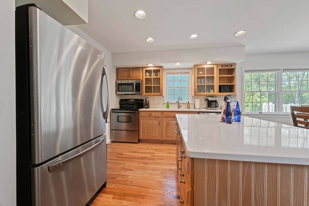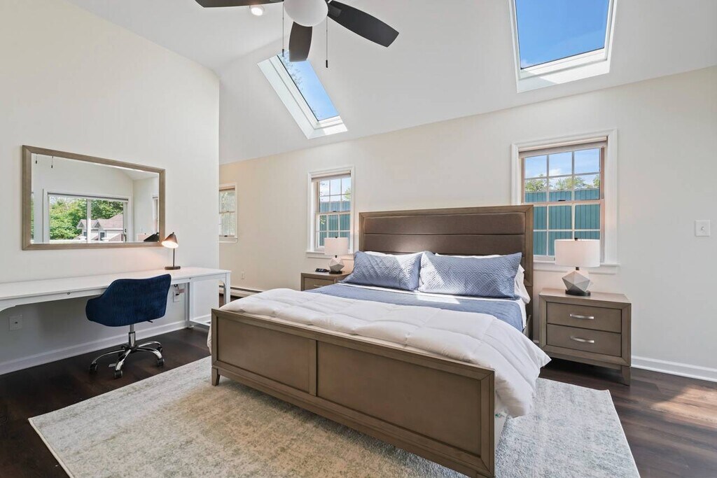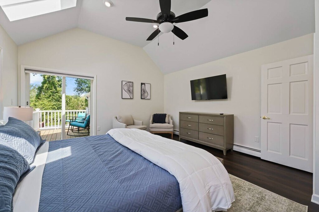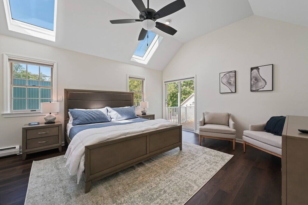 A rare opportunity for customization. This residence can be leased either unfurnished or with a designer furniture package tailored for comfortable, turnkey living. Contact us for details on the furnished pricing. *Furnished rate available upon request! Feel right at home in this large homey 3 bed/ 2.5 bath, 1800ft² townhouse nestled on a quiet property at the north end Saratoga Lake. This Saratoga Stay by Green Springs is freshly updated featuring a King Master Ensuite with private balcony, fully fenced in back yard, wine fridge and accouterments for a variety of morning or evening beverage aficionados. Rooms are open, spacious and cheerily filled with loads of natural light thanks to vaulted ceilings, skylights and walls of windows. Amenities perfect for enjoying a peaceful getaway or a long stay that feels just like home. Walk to the lake for a beautiful sunset. Cozy up by the wood burning fire pit. ◠King, Queen beds, Twin over Full bunk ◠Fully outfitted kitchen with Butler's pantry ◠Towels/linens provided ◠Work from home space ◠Furnished Master bedroom Balcony ◠Furnished deck and sunroom! ◠In Unit Laundry ◠Off street Parking ◠NONsmokers Strictly! ◠4 Person Occupancy Limit Lease Lengths Available: 6, 9 or 12 months ANIMALS: Animal friendly - max 2 ≤50lb total animals weight limit NEIGHBORHOOD: Located on privately owned property accompanied by three other units occupied by other residents. The property is off a road that wraps around Saratoga Lake at one end and connects with Union Avenue (Saratoga Race Course road) dropping you right into downtown Saratoga at the other end. Saratoga Lake views and boat launch are within a brief walking distance. Though we've never heard it or ever received any feedback about disruption, note there is a nearby firehouse across the way yielding potential for related audible noise. Complimentary earplugs available to accommodate guest preference. KITCHEN/ DINING: ◠Coffee Pot, French Press, Nespresso Machine, and electric Kettle ◠Wine fridge, decanter, electric wine opener, wide selection of adult beverage glasses ◠Stainless Steel dishwasher, microwave, oven and refrigerator ◠Blender, toaster etc small appliances UTILITIES: Flat- $125 Property Living Fee - Cable and WiFi included! Billed Back Electric and Gas ONE TIIME FEES: $300 cleaning fee