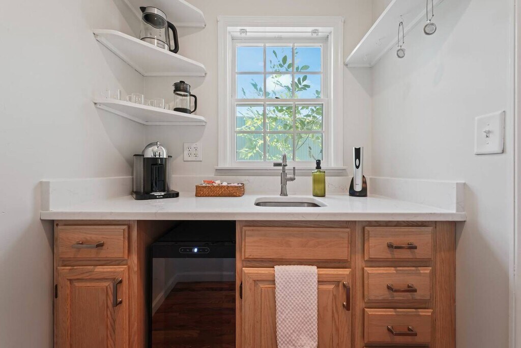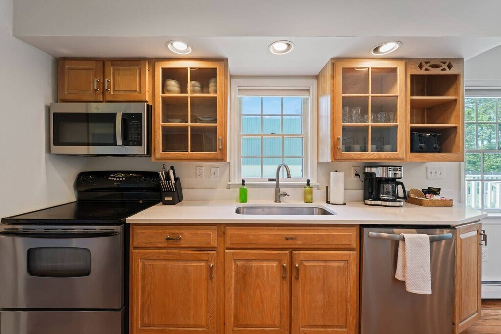 Cozy up and relax in this 1bed/ 1bath, 600ft² renovated private Carriage House nestled at the end of a quiet property, a brief walk to Saratoga Lake’s north end and minutes from downtown Saratoga. The spaces are compact but filled with lovely natural light and amenities perfect for enjoying a peaceful getaway. Gardens, flowers, and fresh lake breezes surround this property. Enjoy a beautiful evening relaxing by the fire with s’mores and let the world melt away. A rare opportunity for customization. This residence can be leased either unfurnished or with a designer furniture package tailored for comfortable, turnkey living. Contact us for details on the furnished pricing. *Furnished rate available upon request! Interior Virtual Tour: Aerial Exterior Video: ?Garage Parking (Heated) ?Fenced, private yard space ?Wood burning fire pit ? Towels/linens provided ? Work from home space ? In Heated Garage Laundry ? NONsmokers Strictly!! ? 2 Person Occupancy Limit Lease Lengths Available: 6, 12, 16 months ANIMALS: Animal friendly - max 2 =50lb total animals weight limit NEIGHBORHOOD: Located on privately owned property accompanied by a main house occupied by other residents. The property is off a road that wraps around Saratoga Lake at one end and connects with Union Avenue (Saratoga Race Course road) dropping you right into downtown Saratoga at the other end. Saratoga Lake views and boat launch are within a brief walking distance from the Carriage House. Though we’ve never heard it or ever received any feedback about disruption, note there is a nearby firehouse across the way yielding potential for related audible noise. Complimentary earplugs available to accommodate guest preference. LAYOUT: From the driveway or garage, up a flight of stairs by great big bright windows finds you in the eat in kitchenette wide open to the living room social space. Coffee table conveniently converts into a terrific desk space! Through the living room is a generous size bedroom with walk in closet and faint window view of the nearby lake. Accessible both via doorways from both the bedroom and kitchen is the bathroom. BEDROOM: For sleeping there is 1 bedroom with a Queen bed and a living room pullout couch for two. KITCHEN/ DINING: For meal time there is a kitchenette featuring all major appliances, a flip up island with bar stools for a great prepping and dining space, place settings for 4, plentiful bakeware and cookware as well as an outdoor grill for a wide variety of culinary prep wants and needs. BATHROOM: The bathroom offers a full size stand up shower, storage shelving, and generous elbow room. stocked with beauty care basics and plentiful bath linens. RELAXATION: For indoor relaxation you’ll find board games along with Smart TVs powered by free high speed internet, complete with basic cable loaded with streaming services apps ready for personal login access. OUTDOORS: The L shaped private yard space wraps around the side and rear or the Carriage House, accessible from the right side of the house through a gate, complete with outdoor grill, seating and games. A cozy wood burning fire pit with Adirondack chairs is available for property shared use as well! GARAGE/ LAUNDRY: The oversized one car garage has a washer/dryer, a bonus second fridge, storage shelves & is heated during cold weather months. Garage area is also a common laundry space utilized by one long term tenant at the property. Use of the laundry is infrequent and only during allowable hours. There are no other indoor shared spaces. ACCESS: Entire carriage house, garage, rear lawn and fire pit space is accessible. The living space is in no way accessible to any other building occupants. PARKING: One garage parking space. PROXIMITY: ?Taxis/Designated Driver Services/Uber/Lyft – readily available ?Saratoga Race Course 3mi ?Rood & Riddle Equine Hospital 3mi ?Downtown Saratoga Dining/ Shopping 4mi ?Saratoga Hospital 5mi ?Skidmore College 5mi ?SPAC 6mi ?Global Foundries 8mi ?Glens Falls Hospital 21mi ?Amtrak train station ~10 min drive. ?Albany International airport ~30 min drive UTILITIES: Flat- $125 Property Living Fee - Cable and WiFi included! Metered Electric and Billed Back Gas ONE TIIME FEES: $200 cleaning fee Tenancy Standards: Animal Policy: Current Listings: New York State Fair Housing Disclosure as required by law: Amenities: generous natural light, ceiling fans, HE a/c and heat, storage, walk-in closet, pantry, garage parking, private fenced in yard, fenced in yard, landscaped grounds/lawn, soft close cabinets, pet friendly, high speed internet/cable tv, stone countertops, fully furnished, towels/linens stocked, property shared wood burning fire pit, dedicated office space, bike rack, Garage parking, toaster, coffee maker, air fryer/slow cooker, Fully outfitted kitchenette, queen bed, Queen pull out couch, walk in closet