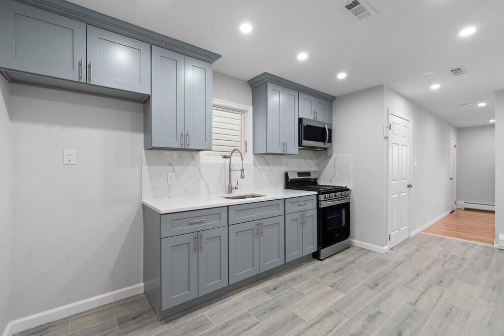 Welcome home! Completely renovated 3 bed, 1 bath apartment with a modern, open feel. Features include soft-touch cabinetry with quiet-close doors and drawers, quartz countertops, stainless steel appliances, and wood floors. In-unit washer/dryer, central air, abundant closet space, and assigned parking add convenience and comfort. Fresh paint throughout creates a pristine, move-in-ready home. The apt is conveniently located near public transportation, schools, parks, restaurants and shopping area. Must see in person, you'll be immediately impressed by the stylish and functional design.