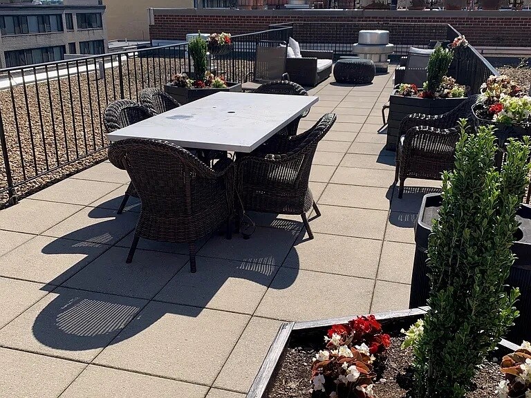 This newly renovated 9th-floor studio condo in the Logan Circle neighborhood, just one block from Dupont, offers a modern living experience. With a king-size bed, abundant natural light, hardwood floors, and comfortable furniture, this condo invites you to feel at home. The high-end kitchen features granite countertops, stainless steel appliances, and all the essential cooking tools. Residents can enjoy a rooftop pool and terrace, and benefit from a front desk with package acceptance through an on-site concierge during extended hours, along with an on-site building manager and engineer. Logan Circle is a vibrant neighborhood in the Northwest quadrant of Washington, D.C., located six blocks east of Dupont Circle. The area is known for its intersection at the traffic circle of 13th Street, P Street, Rhode Island Avenue, and Vermont Avenue, with a federal park at its center. Bordered by S Street to the north, 9th Street to the east, 16th Street to the west, and Massachusetts Avenue to the south, Logan Circle is a trendy area featuring luxury retailers like Mitchell Gold + Bob Williams, chocolatier ACKC, and upscale wine bars. [SI]
