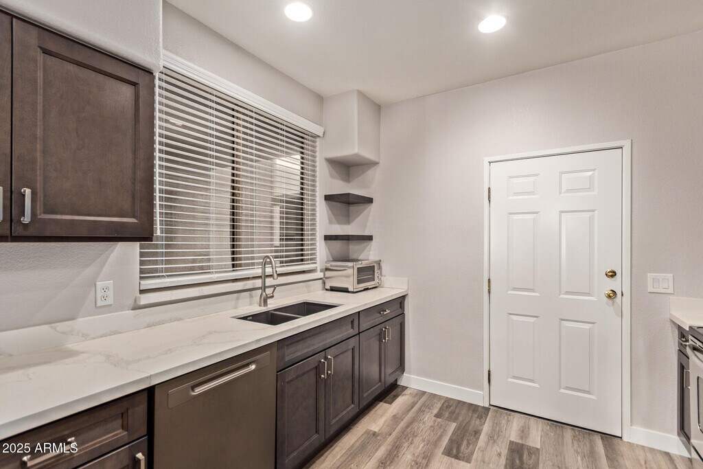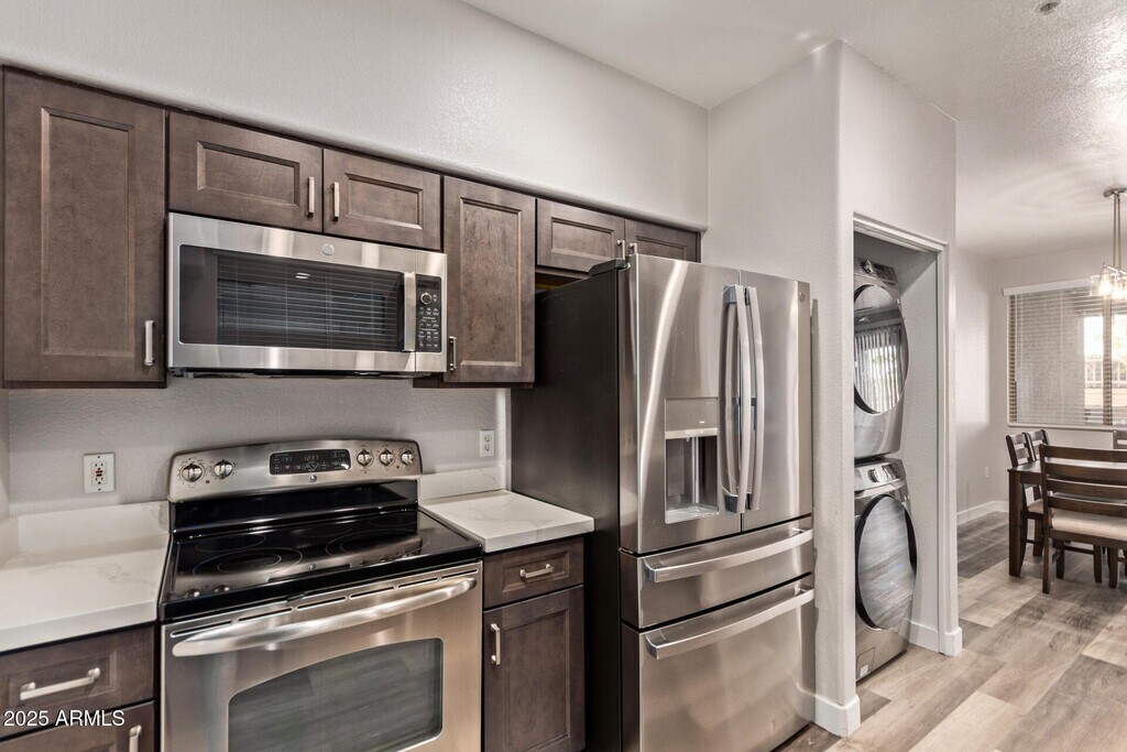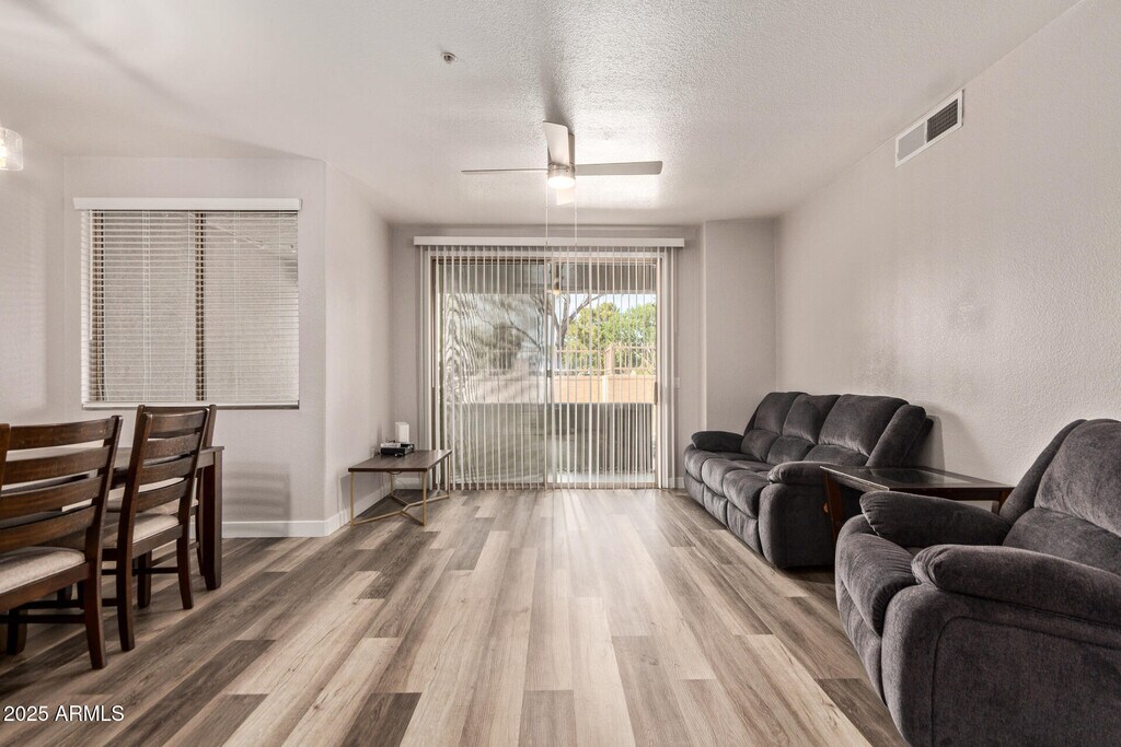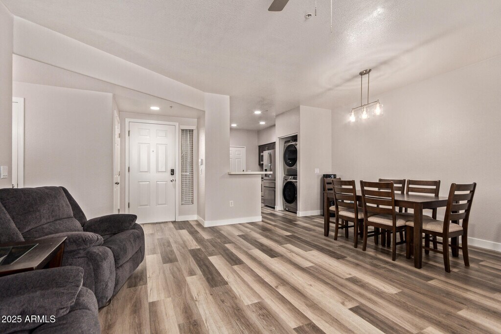 This rare ground floor,two bedroom,two bath townhouse in the gated Premier Condominium community offers a smart blend of convenience and comfort. Spanning 1,046 sq ft,it features low-maintenance laminate and tile flooring,a spacious master suite with walk-in closet,stellar storage thanks to a deep one car garage plus an assigned parking space with a ton plenty of extra parking and stainless appliances with a full size washer and dryer in unit. Relax on your private patio or enjoy the pool,spa,and clubhouse amenities. Centrally located with no freeway crossings to ASU,a great value in Tempe living!