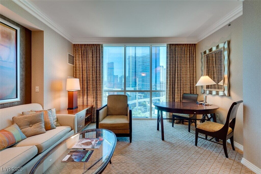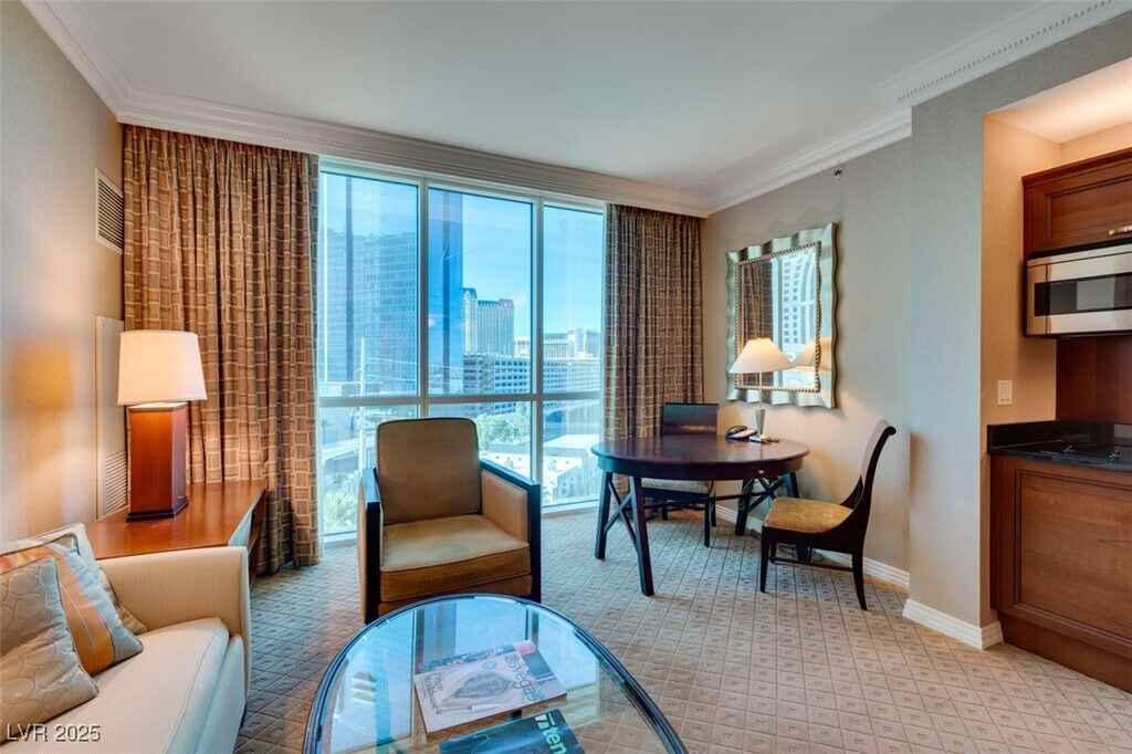 Beautiful studio on the 5th floor WITH STRIP VIEWS! Guard Gated MGM Signature! ACCESS TO MGM Grand Fully Furnished, MEDIA CENTER, TV, MARBLE CLAD BATHS & JETTED TUB, KING SIZE BED, SOFA SLEEPER, KITCHENETTE with microwave, cook-top, and refrigerator! Enjoy 3 Resort Style Pools, Lounge & Starbucks,2 Fitness Centers, Cafe, Laundry facilities.