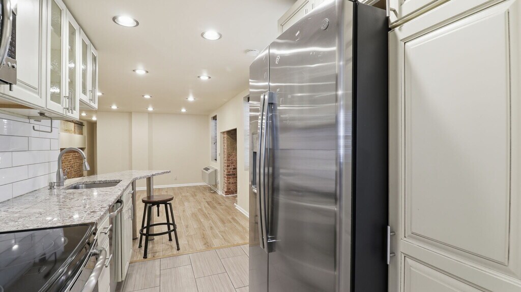 Greylin ThomasWelcome to this bright and stylish ground-floor residence in the heart of Columbia Heights! Newly renovated with all new flooring, fresh paint, and recessed lighting, this spacious one-bedroom home blends modern updates with warm, loft-inspired character—featuring exposed brick, a decorative fireplace, and open kitchen, living, and dining spaces. The renovated kitchen is complete with granite countertops, stainless steel appliances, a breakfast bar, and direct access to the private rear entrance. The beautifully updated bathroom offers a spa-like feel with a glass-enclosed shower, dual shower heads, and designer tilework. Step outside to one of the home’s most unique features: an expansive fenced rear yard with pergola, shared with only one upstairs neighbor, approximately 600–700 sq. ft. of outdoor space — this oasis is perfect for relaxing, grilling, entertaining, or gardening. Parking behind the home is available for an additional fee. Additional conveniences include an in-unit washer/dryer and an energy-efficient split heating and air-conditioning system that provides comfortable heating and cooling year-round. Enjoy being moments from Target, Giant, Starbucks, Call Your Mother, La Tejana, Queen’s English, Meridian Hill Park, the Columbia Heights Metro station, and all the restaurants, nightlife, and retail of both U Street and Mount Pleasant. A rare opportunity to enjoy updated interiors, private outdoor space, and an unbeatable location—all in one home.