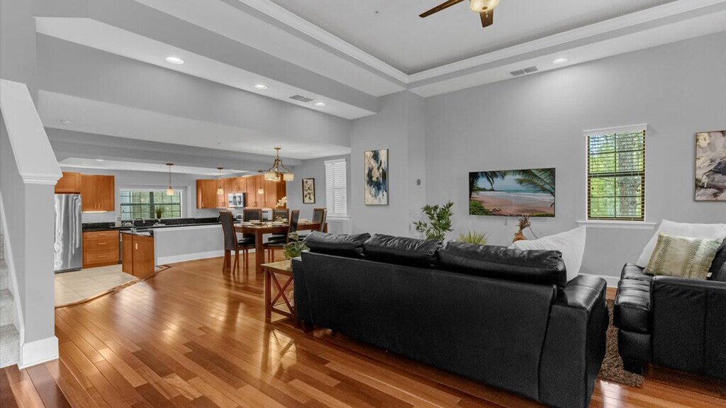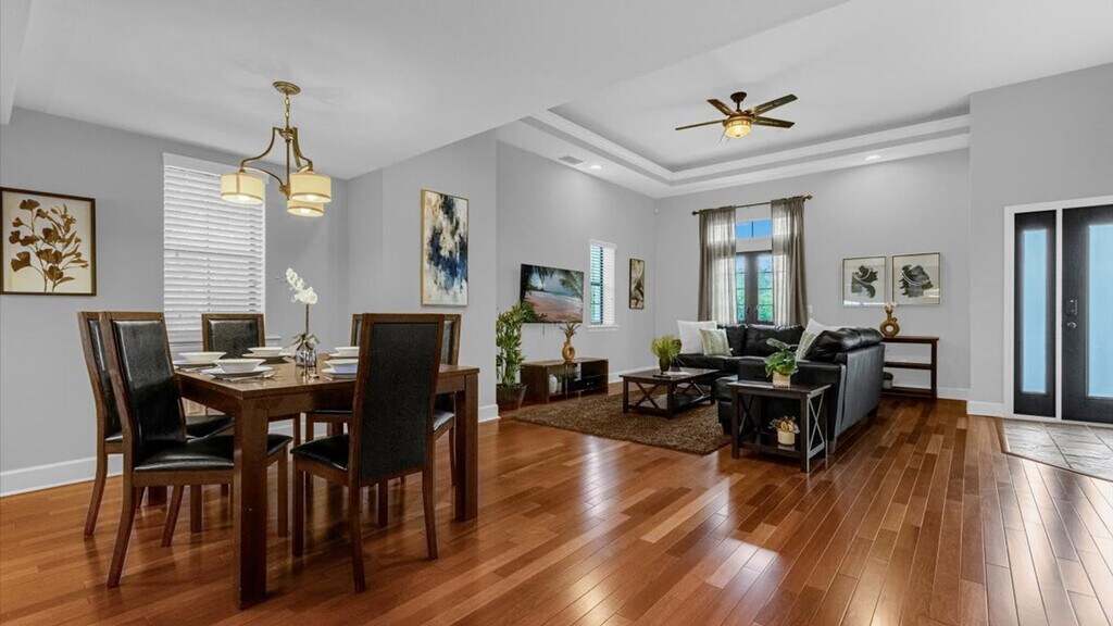 Step into a beautifully designed, split-level townhome that blends stylish modern décor with practical comfort across three spacious stories. Whether you're here to relax or explore, this thoughtfully crafted space offers the perfect balance of luxury and convenience. This townhome features 4 bedrooms and 3.5 bathrooms, making it perfect for families or group stays. Welcome to this elegant townhome where comfort meets elegance. The master bedroom boasts a king-size bed with a private en-suite bathroom, while the other bedrooms offer a mix of full-size and queen-size beds with shared or private bathrooms. The gourmet kitchen includes granite countertops and high-end stainless steel appliances, complemented by open-concept living and dining areas ideal for entertaining or relaxing. Enjoy resort-style amenities such as a swimming pool with a sundeck, a modern fitness center, and tranquil gardens. Pets are welcome with a fee. Only dogs are allowed, with a maximum of two per reservation. There are two designated parking spots in the carport of each unit, and extra free parking spots by the gate. Lake Buena Vista is a vibrant neighborhood situated in the heart of the Orlando-Kissimmee metropolitan area in Florida, renowned for its close proximity to world-famous theme parks and entertainment complexes. At the center of Lake Buena Vista is the Walt Disney World Resort, one of the most iconic and visited tourist destinations in the world. Beyond Disney, the neighborhood is also home to other major attractions such as Disney Springs, Universal Orlando Resort, and SeaWorld Orlando. With a mix of housing options and resort-style amenities, Lake Buena Vista offers a dynamic and exciting lifestyle with its proximity to world-class theme parks and entertainment complexes. Quiet hours are between 22:00 and 8:00. Please comply with the parking regulations. Ensure the A/C temperature remains set at or above 72ºF to prevent system issues. [SI]