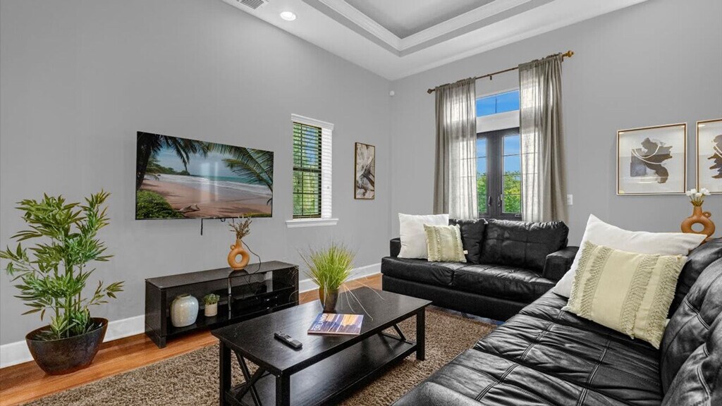Step into a beautifully designed, split-level townhome that blends stylish modern décor with practical comfort across three spacious stories. Whether you're here to relax or explore, this thoughtfully crafted space offers the perfect balance of luxury and convenience. This townhome features 4 bedrooms and 3.5 bathrooms, making it perfect for families or group stays. Welcome to this elegant townhome where comfort meets elegance. The master bedroom includes a queen-size bed with a private en-suite bathroom, while the second and third bedrooms each have a full-size bed and share a bathroom. The fourth bedroom also features a queen-size bed with a private en-suite bathroom. The gourmet kitchen boasts granite countertops and high-end stainless steel appliances, complemented by open-concept living and dining areas ideal for entertaining or relaxing. We are delighted to welcome your pets to our property with a pet fee. Only dogs are allowed, with a maximum of two per reservation. Please comply with the parking regulations, there are two designated parking spots in the carport of each unit and extra free parking spots by the gate. Lake Buena Vista is a vibrant neighborhood situated in the heart of the Orlando-Kissimmee metropolitan area in Florida, renowned for its close proximity to world-famous theme parks and entertainment complexes. At the center of Lake Buena Vista is the Walt Disney World Resort, one of the most iconic and visited tourist destinations in the world. Residents and visitors alike enjoy easy access to Disney's Magic Kingdom, EPCOT, Disney's Hollywood Studios, and Disney's Animal Kingdom, along with themed resorts, shopping districts, and dining options within the resort complex. Beyond Disney, Lake Buena Vista is also home to other major attractions such as Disney Springs, Universal Orlando Resort, SeaWorld Orlando, and the Orlando Vineland Premium Outlets. Quiet hours are between 22:00 and 8:00. Ensure the A/C temperature remains set at or above 72ºF to prevent the system from freezing and disrupting your stay. Guest messages will be replied to within 20 minutes. [SI]
