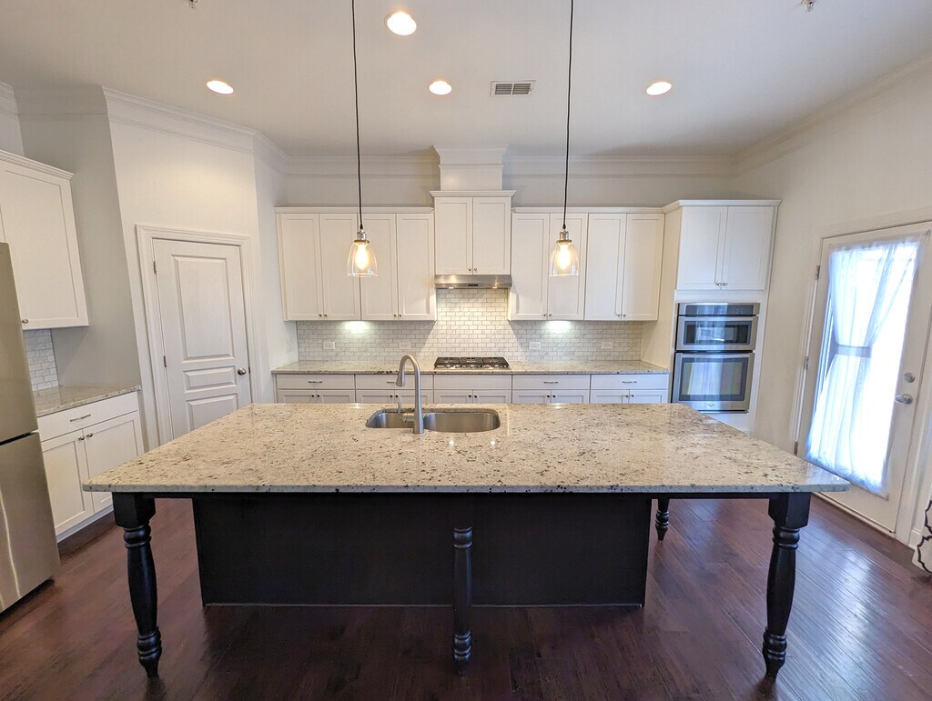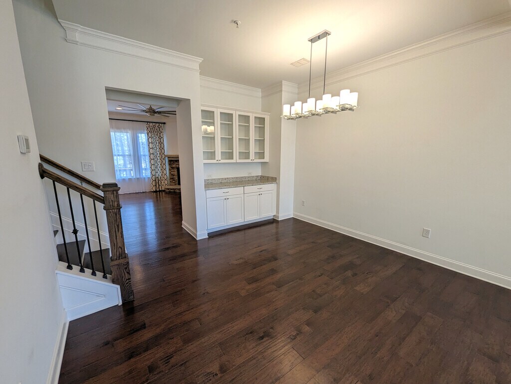 Sought after Cambridge HS/Hopewell MS/Alpharetta ES district in heart of Alpharetta. Meticulously-kept efficient in-between unit all-side brick. Large eat-in kitchen boasts SS appliances, gas cooktop, granite counters, tile back splash, granite island/breakfast bar, that easily seats four w/view to fireside family room. Hardwood with cork sub-laminate floors on main level and upstairs hallway. Great room /dining room combo w/butlers pantry. Finished terrace boasts full bath, mudroom, bedroom/flex room. Large windows with 11 foot ceilings. Efficient use of space with walk-in closets, pantry and storage room in garage. Energy efficient appliances including Samsung quad-door refrigerator, massive 6.2 cu ft washer and a hybrid heat pump dryer. Also included is an energy efficient hybrid water heater. Utilities available in the area includes AT&T (fiber ready) and Xfinity. Door bell security camera by Ring and keyhole at the front door and exterior garage door keypad for ease of entry. -Owner pays for electricity, gas, water & sewer, waste/recycling and internet -First month rent due at signing -No smoking allowed -Small pets (up to 20 pounds) permitted -Minimum lease duration: 12 months -Gross Income: 2.5x rent -Security deposit: 1 month's rent -Credit score requirement: 680+