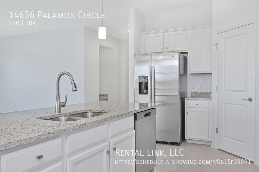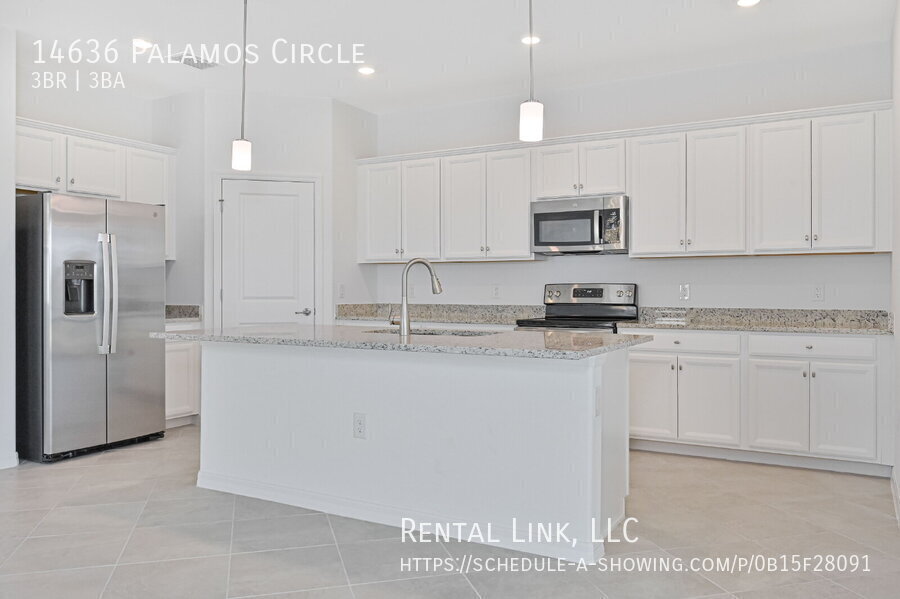 This beautiful three-bedroom, three-bath home offers 1,852 square feet of modern living space within the desirable Portico community in Fort Myers. The home features an open floor plan with neutral tile flooring throughout the main living areas, creating a clean and spacious feel. The kitchen is designed for both function and style, with granite countertops, white cabinetry, stainless steel appliances, and a large island that overlooks the dining and family rooms. Each bedroom is generously sized, and the primary suite includes a walk-in closet and a private bath. A full-size washer and dryer are included, and the attached two-car garage provides plenty of storage space. Step outside to the screened lanai and take in the peaceful lake views perfect for relaxing or entertaining guests. Residents of Portico enjoy access to outstanding community amenities. The gated neighborhood offers a resort-style pool, fitness center, tennis and pickleball courts, basketball courts, and a playground. The clubhouse serves as a social hub for community gatherings, while the sidewalks and green spaces throughout the neighborhood provide plenty of opportunities to enjoy the Florida outdoors. Located in the Buckingham area of Fort Myers, Portico combines a quiet residential setting with easy access to shopping, dining, and everyday conveniences. Downtown Fort Myers and I-75 are just a short drive away, making commuting simple and allowing you to enjoy all that Southwest Florida has to offer from beaches and golf courses to entertainment and cultural events.Screened Lanai
