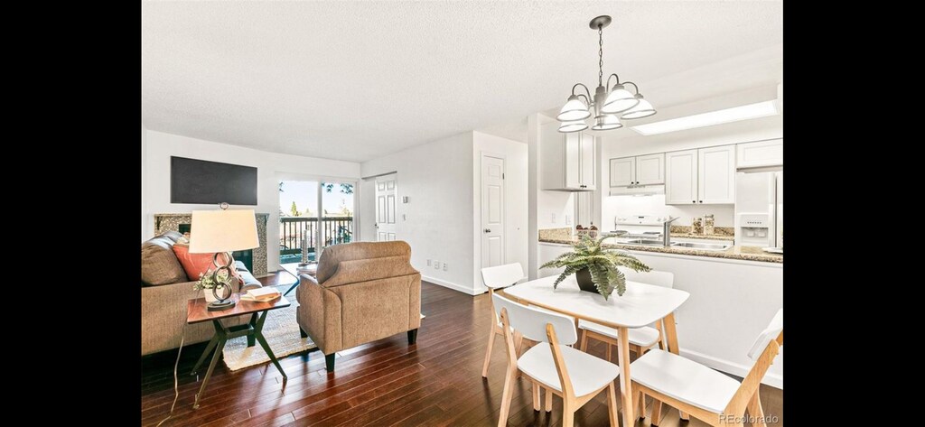 * Condo features open floor plan, brand new LVP, new paint, blinds, air conditioner. * Large family room with a fireplace and dining area. * Kitchen with renovated cabinets, all appliances. * Secure building entry using key only. * Entire complex is newly renovated. * Washer and Dryer included in the unit. * Large private covered balcony that overlooks the community pool and provides extra storage. * Grassy open space with mature trees, and swimming pool. * Large surface parking lot. * Easy access to I-225, DIA, Lowry, Fitzsimons/Anschutz medical campus, Buckley air force * Walking distance from light rail station and bus stop, Aurora mall, shopping, and entertainment. * Snow removal, grounds maintenance, exterior and roof maintenance included.