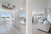 PURE FLORIDA WATERFRONT LUXURY! Glamorous,completely remodeled,freshly painted and newly carpeted 5th floor corner condo in the highly esteemed "Water’s Edge at Peppertree Pointe" delivers true waterfront luxury with a dramatic 180° unobstructed water view over the Caloosahatchee River,lakes and marina - boasting AMAZING SUNSETS! From sunrise coffee to glowing sunsets,the panorama from your spacious lanai feels like living on the bow of a yacht. Enjoy your morning coffee at your entrance - while overseeing the greens of Gulf Harbour - and relax with your glass of wine overlooking the marina at sunset! Life does not get any better! ***** Inside,the residence is very contemporary - light,bright and comfortable,with fresh finishes that make the whole space feel “brand new.” The open living area flows toward the wall of glass and the river beyond,creating a stunning backdrop for everyday living and entertaining. Upstairs,the elevation on the 5th floor brings in constant tropical breezes and that “above it all” feeling of privacy. Water’s Edge at Peppertree Pointe is one of Fort Myers’ most desirable gated riverfront communities,offering direct Gulf access via its marina,a long fishing pier,multiple swimming pools,tennis courts,lush botanical landscaping and romantic riverfront walkways where dolphins and manatees are frequent visitors. Just minutes to Fort Myers Beach with easy access to Sanibel and Captiva,this location is hard to beat for boaters,beach lovers and anyone who wants the best of Southwest Florida at their doorstep. NO PETS ALLOWED. Available from January on - come enjoy your own slice of paradise on the river!