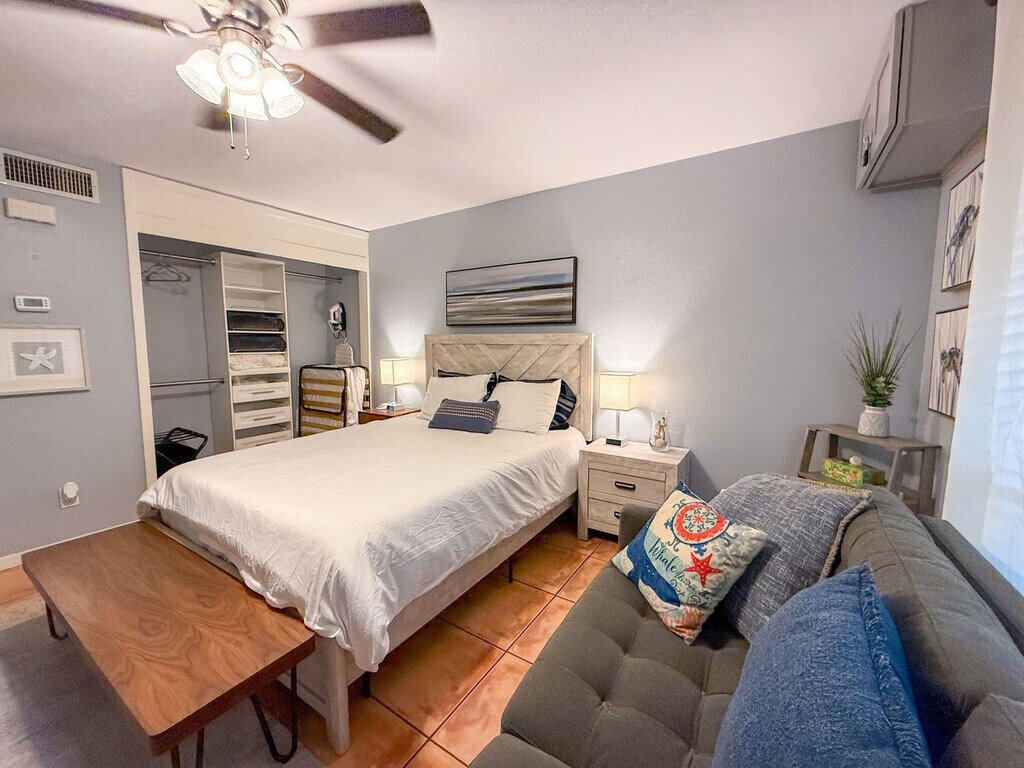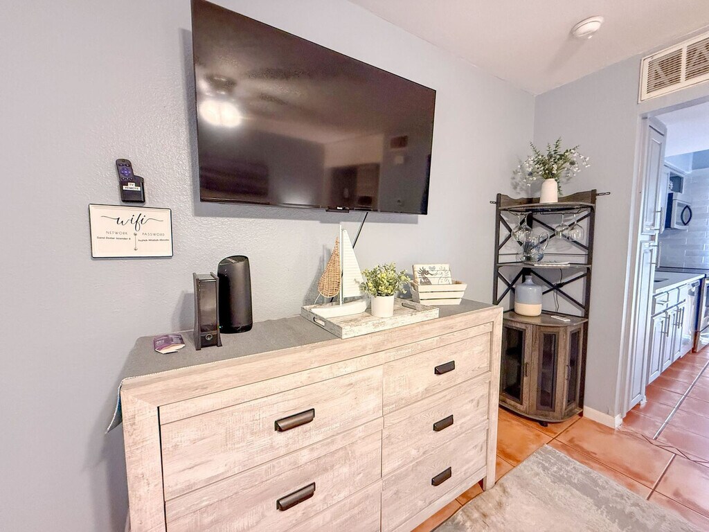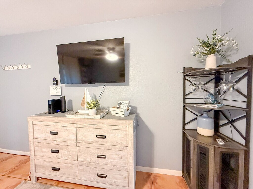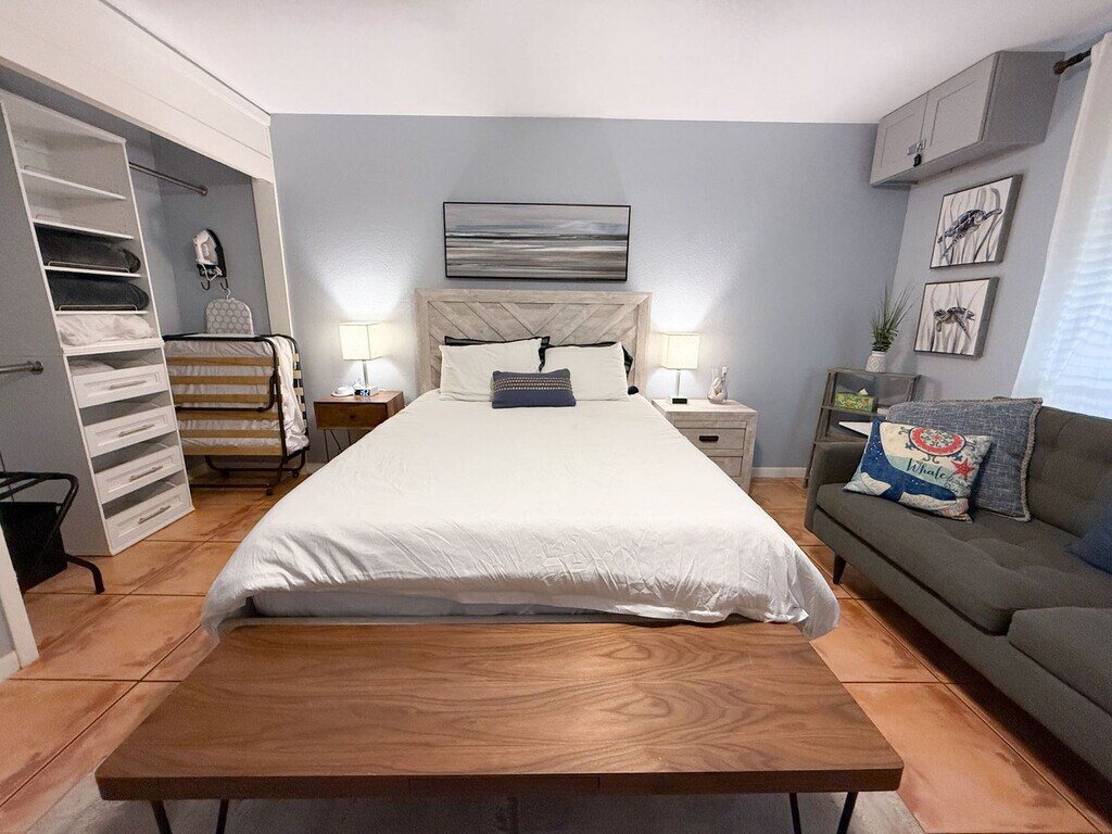 Escape to this newly renovated studio condo just 2 minutes from the beach. Feel at home with a pool, pergola, and a private dock with two boat slips. Perfect for a romantic getaway or a cozy stay, it features a queen bed and sleeps up to 3. Walk to Whitecap and Michael Ellis Beach and relax in a bright, open space with modern comforts, a well-equipped kitchenette, and a cozy seating area. Welcome to your coastal getaway! Experience the perfect beachside retreat in this charming open-floor studio condo, ideally located just moments from the sandy shores. Dive into culinary adventures in the fully equipped kitchen, boasting modern appliances and ample countertop space for crafting delicious meals. Unwind in coastal comfort in the inviting living room, featuring plush seating and a flat-screen TV for cozy nights. Drift off into blissful slumber in the spacious bedroom, outfitted with a sumptuous queen-sized bed adorned with soft linens and plush pillows. Indulge in a soothing soak or refreshing shower in the clean and modern bathroom, complete with fresh towels, essential toiletries, and ample vanity space. Stay connected with high-speed Wi-Fi internet access throughout the condo. Rest easy with ample parking space provided for your convenience. Dive into relaxation with access to community amenities such as a sparkling pool and private dock access. This unit has one assigned parking spot and all other vehicles must use street parking. Nestled in the vibrant coastal city of Corpus Christi, this home offers an unparalleled blend of seaside serenity and urban excitement. Situated mere moments from some of the region's most iconic beaches, this neighborhood is a paradise for beach lovers and outdoor enthusiasts alike. Just a short drive from your doorstep, Padre Island National Seashore awaits with its pristine stretches of white sand and crystal-clear waters. Experience the natural beauty of Mustang Island State Park, located within easy reach of your home. Dive into an underwater world of wonder at the Texas State Aquarium, located a short distance away. No pets are allowed due to HOA rules, with violation fees of $200 for each instance. For stays over 7 nights, a mid-stay cleaning is required to help keep the space fresh. This is the same as the regular cleaning fee and will be collected after booking. All homes are equipped with Smart TVs and all streaming services are bring your own login. A starter pack of essentials is provided to help you settle in, including trash bags, dishwashing pods, toilet paper, shampoo, conditioner, body wash, coffee, creamer, and sugar. Any additional supplies beyond the starter pack are the guest’s responsibility unless your stay is 14 days or longer, in which case a mid-stay replenishment may be offered. [SI]