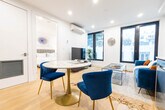 Immerse yourself in the ultimate luxury experience with this sophisticated Greenpoint condominium available for rent. Boasting a rare 1-bedroom, this brand new and exclusive elevator building offers the perfect blend of comfort and style. With floor-to-ceiling windows, designer kitchen and bath, and a spacious living room, this stunning residence is the epitome of elegance. Enjoy the convenience of having a washer and dryer in the unit and an elevator for ease of access. This brand new and modern 1-bedroom, 1-bath apartment located in prime Greenpoint is the perfect place for anyone visiting New York for work or pleasure. With subway stations conveniently located all around, you'll have easy access to explore all the city has to offer, including a wide variety of restaurants and cuisines. Completely new and designed with great emphasis on comfort, luxury, and detail, this homey apartment is bright and full of light, with a warm and sophisticated ambiance. The kitchen is fully equipped with brand new appliances, including a washer and dryer, and the apartment is furnished with modern and chic decor throughout. Featuring a spacious and fun living area with a flat screen TV and sofa bed, a dining table, and great closet space throughout the apartment, this space is perfect for unwinding after a long day exploring the city. The bedroom features a luxurious queen-size bed, and high-speed Wi-Fi is available throughout the apartment. Fresh linens, towels, and extra pillows are also provided. This new modern boutique building features video intercoms and a security system for your peace of mind. With all the amenities and its prime location, it will be almost impossible to say goodbye to this apartment and location. With its queen-size bed and sofa bed, the apartment is perfect for 2-3 people, but an air mattress can be provided at your convenience, free of charge, to host a fourth. Greenpoint is a neighborhood located in the northernmost part of Brooklyn, New York City. It is bounded by the East River to the west, Newtown Creek to the north and east, and Williamsburg to the south. Known for its Polish-American heritage, Greenpoint has a thriving arts and creative scene, with a wide variety of independent shops, restaurants, and cafes. The neighborhood is also known for its waterfront parks and recreational spaces, as well as its easy access to transportation via several subway and bus lines. [SI]