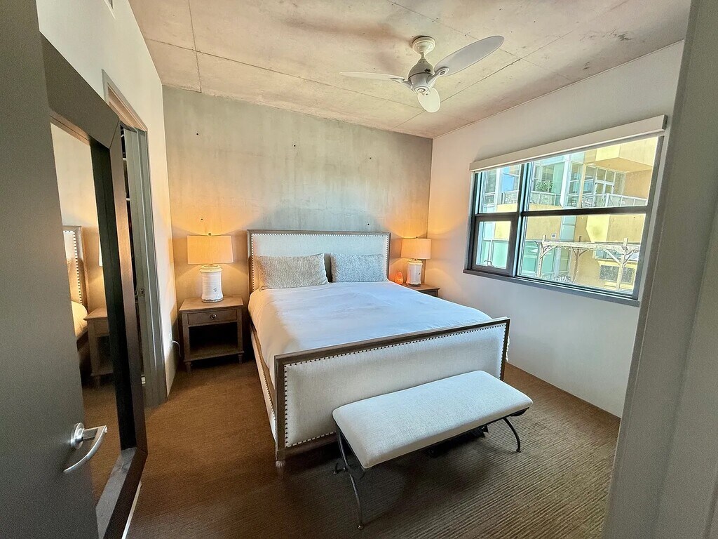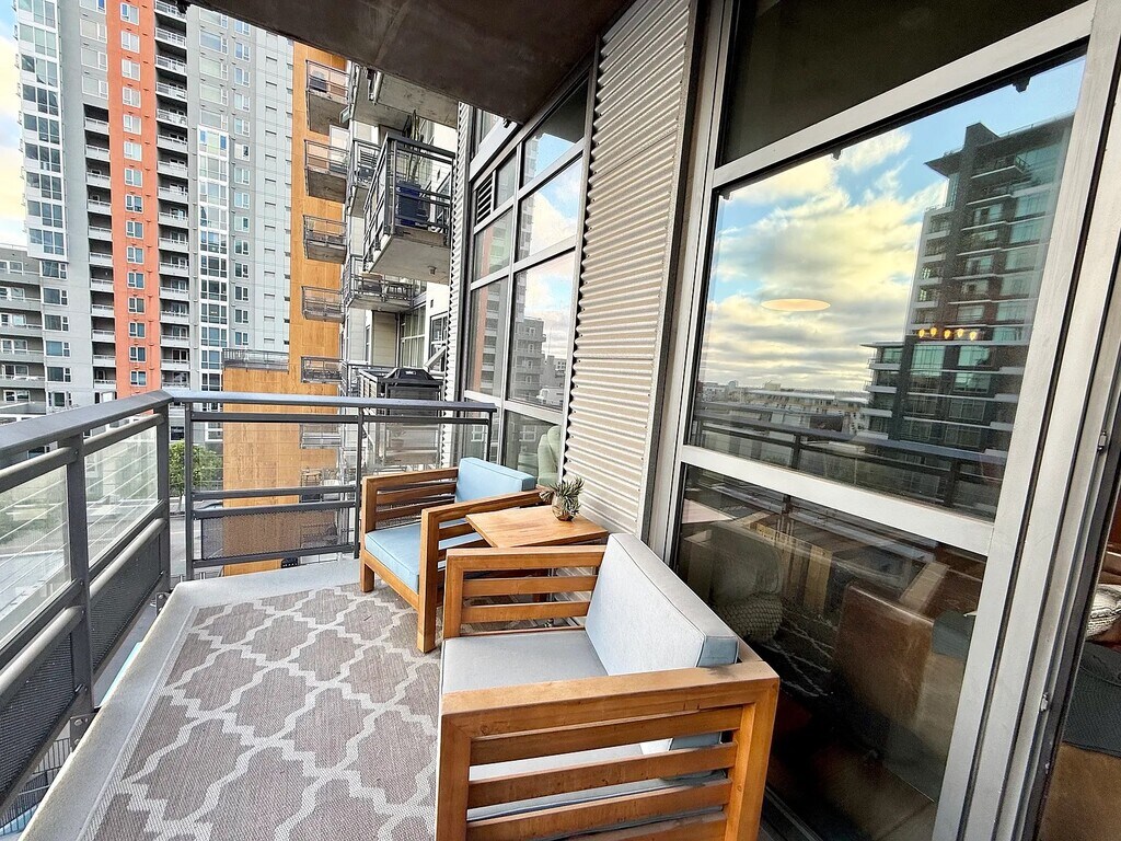 robb fleischerVery Commodious Executive beautiful condo, boasting 923 sq. ft. of living space, located in the heart of Little Italy, San Diego's entertainment area Open concept living, bedroom area with queen size bed, as well as a extra large walk in closet resides for your storage needs. Full size In Unit Laundry.Unit features a gourmet modern kitchen embellished with stainless steel appliances and darkwood cabinets. There is a beautiful breakfast bar making this kitchen not only attractive, but ready suited for all your cooking pleasures. The area also inhabits dimming ceiling lights. The living area features a 55" TV, two sets of sofas for your entertainment andor visiting needs. The dining area is suited for 4 guests. In addition, there are stunning views of the city heights from your intimate balconyThe bathroom is generously sized. Darkwood is a common design feature throughout the unit, including the bathroom. It has a shower and a bathtub.This 11story building provides private parking via Garage. Little Italy is a 48squareblock district in NW San Diego. It bustles with international Restaurants, Patio Cafes, urban wineries, Specialty boutiques, and is home to several Craft Brewing venues. You will have plentiful Brewpubs and Restaurants to choose from for all your tasting ventures. In addition, Little Italy is known for their festivals, cultural endeavors, and indiemusic venues. One of the best dessert places is just next door Extraordinary Desserts and kabop shop Restaurant has great food.Key Points of Interest San Diego International Airport, located 2 miles or 10 minutes away. Point Loma, located 7.5 miles or 22 min. away. Coronado Island, located 6.5 miles or 20 min. away. Nassco, located 4 miles or 10 min. away. 32nd St. Naval Station, located 4.5 miles or 12 min. away.Powered by
