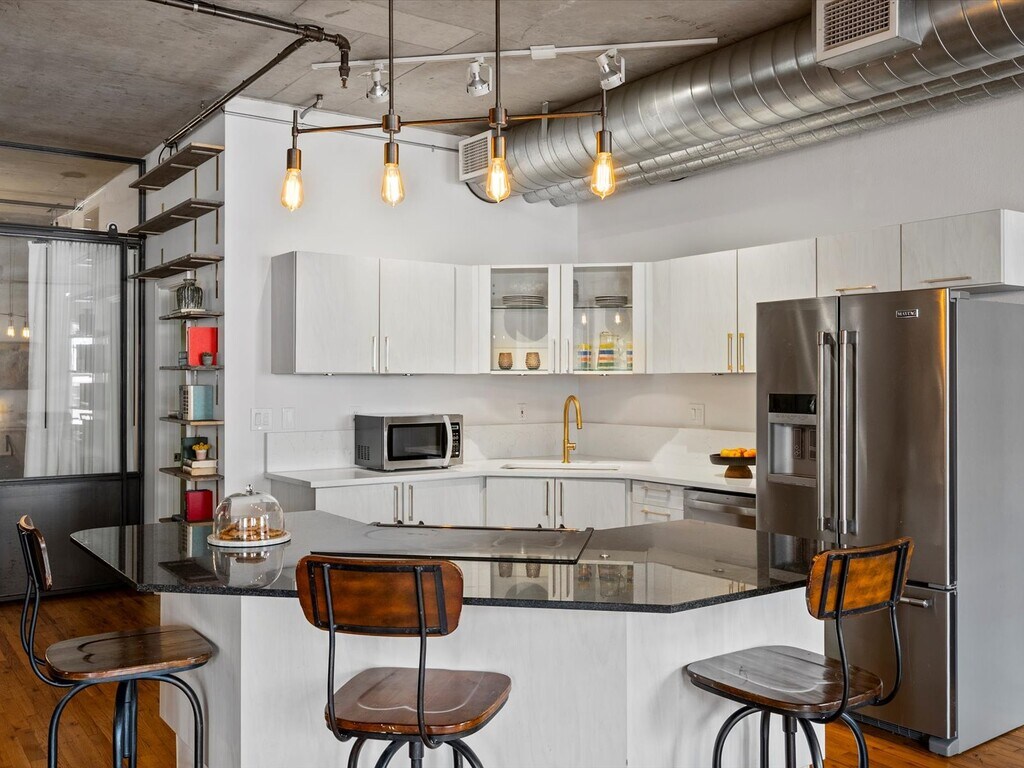 NOTE: Available for the month of August 2025 only at this time. Pack your bags and move right in. Fully Furnished! Prepare to be wowed by Unit 3U, an inspired urban loft blending modern updates with historic charm in the heart of LoDo. This reimagined 2-bedroom, 1-bath condo offers a rare mix of style, warmth, and function. The spacious layout features natural oak floors, 10-foot concrete ceilings, and sunny west-facing windows. Recent updates include a sleek kitchen with an oversized island, quartz countertops, custom cabinetry, and new appliances. The bathroom has been nicely remodeled, and the unit includes in-unit laundry. The walk-in closet keeps everything organized, while French doors welcome in sunlight and warmth, filling the dining room and living space with an inviting glow. Just outside your door, LoDo's best is waiting...Union Station, Ball Arena, Cherry Creek Bike Path, and the light rail to DIA are just blocks away. And food lovers, rejoice: you're moments from Michelin-starred dining, including Brut, Beckon, and Alma Fonda Fina. Palace Lofts delivers secure, amenity-rich living with a 24-hour doorman, shared communal terrace with city views, fitness center, and conference room. Deeded underground parking and private storage are included. This is downtown living dialed in and done right!