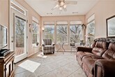 Beautiful one level villa on cul-de-sac in coveted Highland Park Villas. This home has 2 bedrooms, 2 bathrooms with an office. The master bath includes a walk-in shower, double sink vanity and large walk-in closet. This home features granite counter tops, 9ft ceilings with crown molding, light and bright, a lovely sunroom, enlarged deck, and extra storage in partially finished basement. Additional features include pantry, pull out shelves, additional windows, 3 exterior electric window shades and oversized garage. This home backs the forest on very quiet, private street, with access to a private nature trail, club house and private swimming pool. All landscaping is taken care of by owner. New Washer/Dryer, and all appliances included. *Available Immediately*