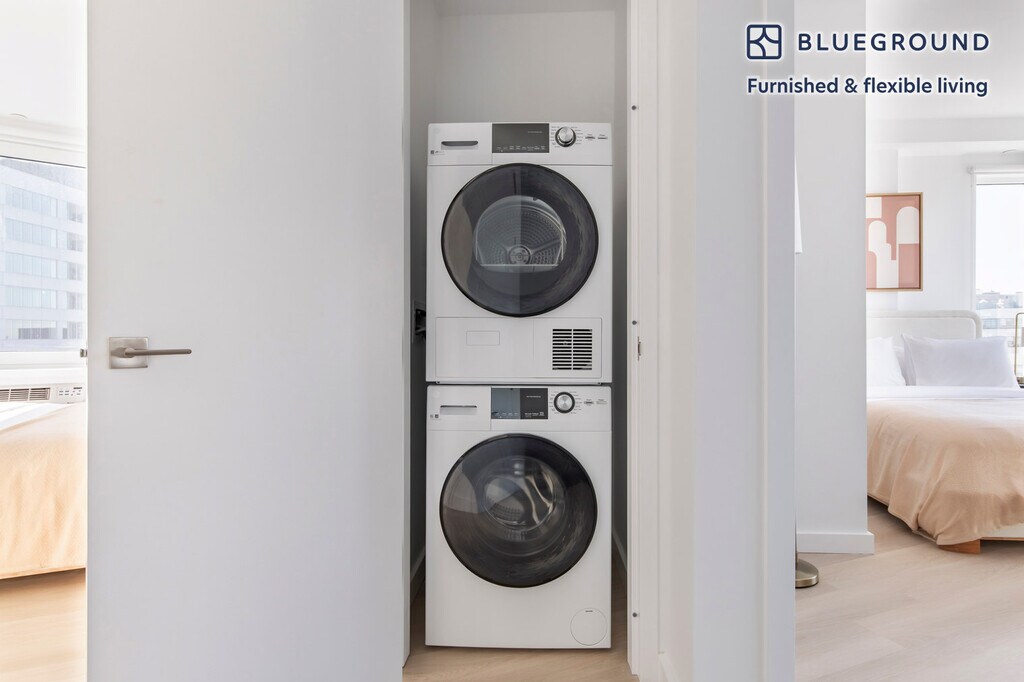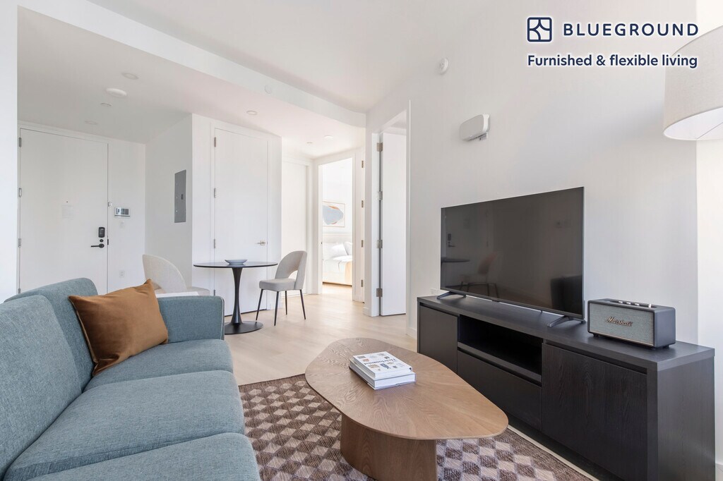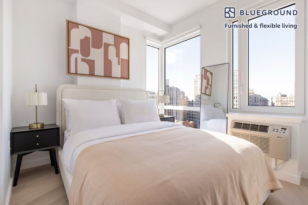 Show up and start living from day one in New York with this charming two bedroom Blueground apartment. You’ll love coming home to this thoughtfully furnished, beautifully designed, and fully equipped Downtown Brooklyn home. (ID #NYC2216) The advertised rate of $5,030/month is the lowest available price, based on a 11 month(s) and 29 day(s) stay with a move-in date of August 1, 2026. Rates vary depending on the duration of stay, season, and other parameters. For exact pricing and additional pricing components, please visit our website and enter your desired move-in and move-out dates. The rate is applicable when billed upfront; it can be higher if billed in multiple payments. Brokers are welcome to reach out. Were you looking for an unfurnished lease? Try Blueground instead and upgrade from unfurnished to furnished living: - Furnished at rates comparable to unfurnished - No setup or furniture costs - save thousands - Move-in ready - save time, just bring your suitcase Designed with you in mind Gorgeous furniture, fully equipped kitchen, smart TV, and a premium wireless speaker are just a few of the amenities you’ll find inside this two bedroom apartment. Ideally located in New York, you’ll find a lot to love outside as well. When you’re ready to relax, you’ll be happy to discover every Blueground bedroom comes with superior quality mattresses, luxury linens, and cozy towels. We handle everything so you can simply show up and start living. This apartment also offers in-apartment laundry. Sleeping arrangements Queen Bed, 63in/160cm Queen Bed, 63in/160cm Amenities Building amenities unique to this two bedroom apartment include an on-site: - Doorman - Dryer - Elevator - Washing machine - Lounge Arrival and ongoing support The entire apartment is yours to enjoy! Throughout your stay, you’ll have access to our Client Experience team through the Blueground App. You can schedule additional cleanings, submit maintenance requests, and view our neighborhood recommendations with just a few taps. We’ll share all details upon confirmation of your stay. Ideally Located This furnished apartment is located in Downtown Brooklyn, one of the borough's most sought-after neighborhoods. The bustling area is characterized by both office towers and residential buildings, so there's a wide variety of restaurants serving cuisine from all over the world, night and day. Downtown Brooklyn is also the site of the Brooklyn Academy of Music, a cutting edge arts complex, and it's an easy walk to the foot of the famous Brooklyn Bridge. The neighborhood is served by several subway lines and bus routes, making it easy to get to Manhattan and the city's other boroughs. Other things to note Building amenities may have an extra cost. This Blueground apartment has flexible lease options, allowing you to book it for one month, a year, or more. Brokes CYOF. We take great pride in ensuring every photo displayed is shot in our own units with our actual furnishings. That said, we regularly refresh our decor and furniture arrangement, which may differ from what’s pictured. [SI]