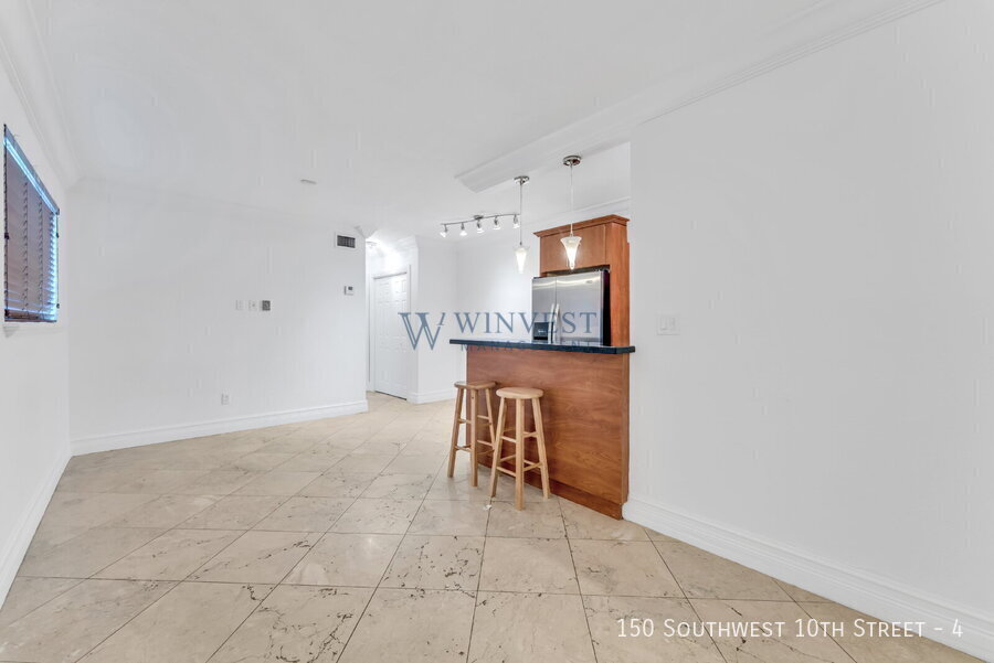 Spacious unit at 150 SW 10th St #4 (1 bed 1 bath) just minutes from Brickell, Downtown, and major highways. Close to dining, nightlife, and public transportation. Well-maintained, move-in ready, and easy to show. Available now — don’t miss it.
