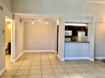 This well-maintained 1-bedroom, 1-bathroom condo offers a comfortable layout with updated finishes and a convenient first-floor location. Inside, you’ll find neutral flooring throughout the main living areas, giving the home a clean, cohesive look that’s easy to maintain. The kitchen features updated cabinetry, solid-surface countertops, and a full appliance package, with a seamless flow into the living and dining areas. Natural light fills the space, creating an open and inviting feel. The bedroom offers a practical layout with good closet space, while the bathroom is clean and functional, featuring updated fixtures and a full tub and shower combination. A standout feature of this home is the oversized screened lanai, providing a quiet outdoor space with room for seating or dining. The ground-floor location allows for easy access and a more private feel with surrounding landscaping. Additional features include a dedicated laundry area with full-size washer and dryer and a walk-in closet with built-in storage and drawers for added organization. The community offers a range of amenities, including a swimming pool, tennis courts, and a playground area, all set within a well-kept environment with mature landscaping and open green spaces. Conveniently located near shopping, dining, and major roadways, this property provides easy access to everything the area has to offer while maintaining a comfortable residential setting.Screened Lanai