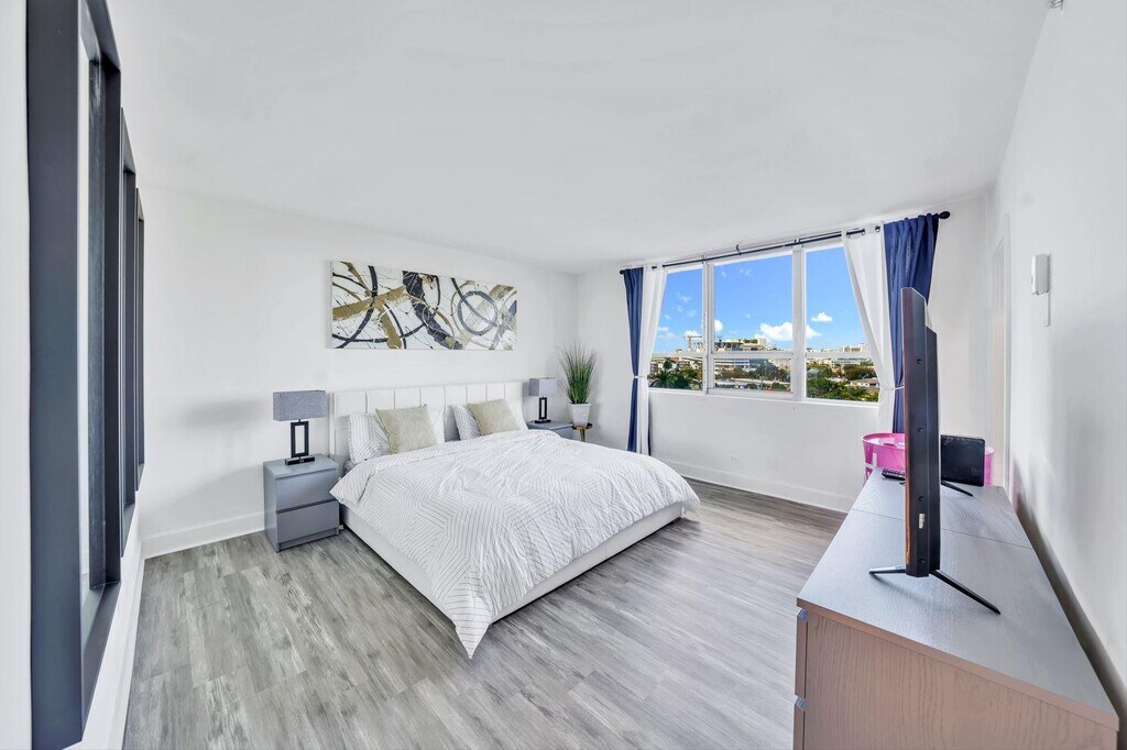 Available for the month of December this fully furnished 1 bed 1 bath bay view unit is modern and updated in the heart of South Beach. Located in the newly remodeled Flamingo Building. Features in-unit washer/dryer, dishwasher, Wi-Fi, and all utilities included. Enjoy beautiful bay and sunset views with access to luxury amenities: 2 resort-style pools, renovated gym, on-site restaurants, and coffee shop. Prime location—walking distance to Lincoln Road, 5 minutes to the beach, and 15 minutes to Brickell, Wynwood, and the Design District.