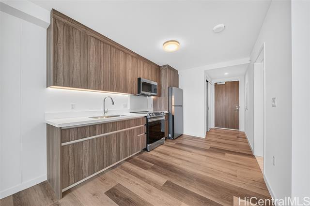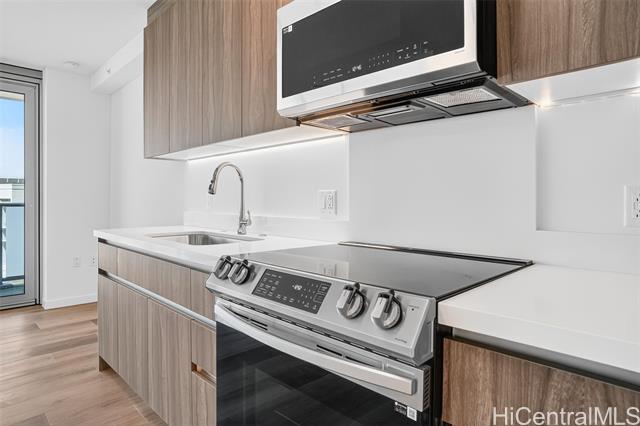 Be the very first to live in this brand-new, never-lived-in 0-bedroom, 1-bath (not furnished) residence at The Park on Ke‘eaumoku, Honolulu’s newest lifestyle community. This thoughtfully designed home includes 1 covered parking stall and offers the perfect blend of comfort, style, and unbeatable convenience. Step inside to a bright open-concept layout with modern finishes, floor-to-ceiling windows, and stunning views from the Rycroft side, featuring Diamond Head and the Honolulu skyline. Enjoy your private lanai — ideal for morning coffee or unwinding with the evening breeze. The sleek kitchen is equipped with stainless-steel appliances and flows seamlessly into the living space, making it perfect for both relaxing and entertaining. Residents enjoy resort-style amenities just steps from home, including a sparkling pool and spa, fitness center, yoga studio, sauna, movie theater, co-working lounge, BBQ pavilions, cabanas, and 24-hour security. Even better, everyday convenience is right downstairs with Midtown Eats, a popular food court located on the ground level. Plus, you’re just one block away from a Korean market, along with Ala Moana Shopping Center, Target, Walmart, local dining, and easy freeway access. A rare opportunity to rent a brand-new condo in one of Honolulu’s most exciting new communities. For questions or to schedule a private showing, please contact Taeen .