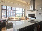Completamente amueblado y listo para mudarse. ¡Sin comisión de intermediario! Lujosa vida frente al mar en el emblemático edificio Hudson Tea: Disfrute del encanto de este loft en esquina renovado, ubicado en el famoso Hudson Tea Building. Deléitese con las majestuosas vistas del río Hudson y los acantilados de Palisades. Servicios con todo incluido: Benefíciese de todos los servicios públicos incluidos en esta impresionante residencia, lo que garantiza una experiencia de vida sin complicaciones. Además, el edificio ofrece una conveniente instalación de lavadora-secadora. Vistas espectaculares y luz natural: El apartamento cuenta con ventanas de 3 metros con persianas personalizadas, que ofrecen vistas panorámicas y abundante luz natural. Espaciosa disposición de residencia "D Line": Disfrute de casi 130 metros cuadrados/1.400 pies cuadrados de espacio, que incluye un diseño dividido con un acogedor vestíbulo de entrada, dos dormitorios, dos baños y una amplia cocina abierta, sala de estar y área de comedor. Cocina gourmet del chef: La cocina de concepto abierto está equipada con una gran isla central, barra de desayuno, electrodomésticos de acero inoxidable de primer nivel, encimeras de granito y un amplio gabinete. Opulentos dormitorios y baños estilo spa: La suite principal incluye tres armarios organizados a medida y un baño en suite con una ducha extragrande. Ambos baños cuentan con acabados de mármol y elegantes tocadores. Características adicionales para mayor comodidad y conveniencia: Este loft cuenta con una lavandería grande, armario de sábanas empotrable, armario de abrigo, pisos de madera natural de 10 cm, ventiladores de techo y elegantes accesorios de iluminación. Instalaciones integrales para edificios: Acceso a un gimnasio, un área similar a WeWork, un lounge y un área de juegos para niños. Estacionamiento disponible en el garaje frente a la calle. Ubicación privilegiada y fácil desplazamiento: A solo minutos de Times Square en transporte público, autobús, metro o ferry, ofrece la combinación perfecta de tranquila vida frente al mar y accesibilidad a la ciudad.