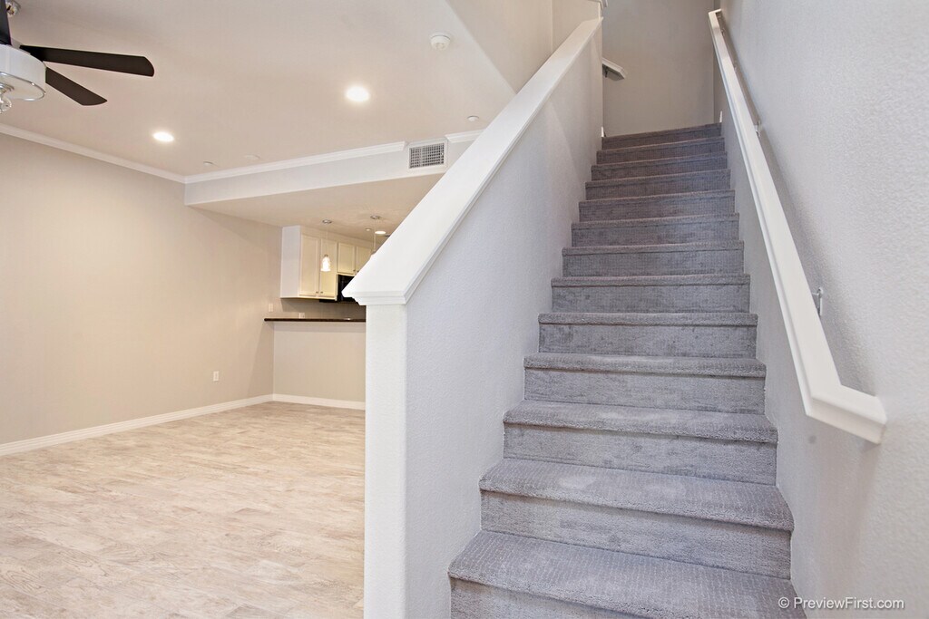 This updated 1,235 sq. ft. condo in the heart of Little Italy offers modern luxury and convenience with a private street-level entrance and patio. The home features fresh designer finishes throughout, including contemporary lighting and fans, sleek porcelain wood-look flooring downstairs, plush high-end carpet upstairs, new white cabinetry, granite countertops, updated bathrooms, custom California Closets, and energy-efficient LED lighting. The layout includes two spacious master suites with walk-in closets and full baths, plus a downstairs half bath, ample storage, and an in-unit washer/dryer. Residents enjoy access to a fitness center, beautiful courtyard with water features, a clubroom, and secure underground parking with extra storage. Surrounded by the best of Little Italy restaurants, coffee shops, boutiques, art galleries, and the weekly farmers market this home is also close to the Gaslamp, Embarcadero, Seaport Village, and offers easy access to freeways, beaches, and the airport.
