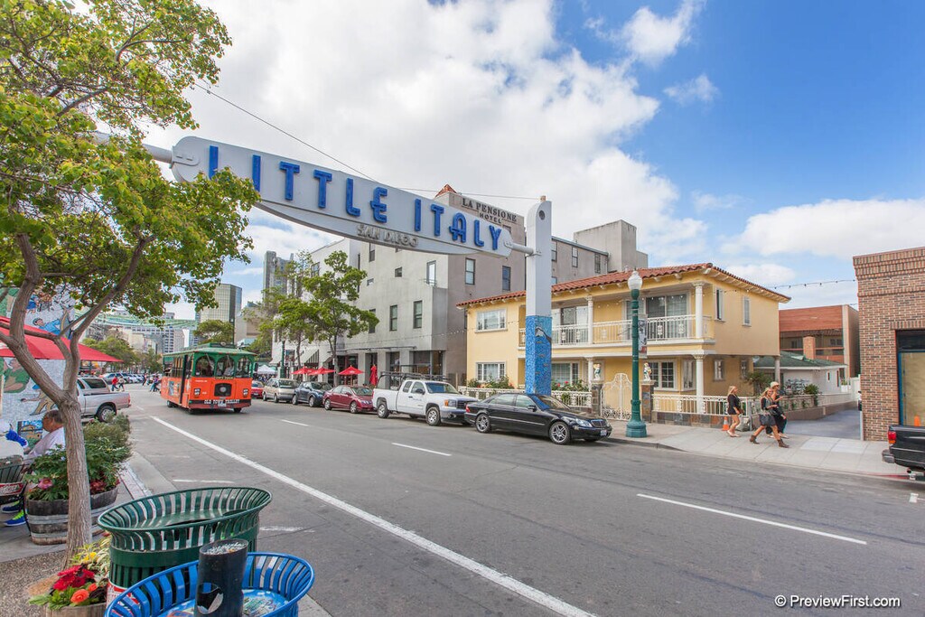 This updated 1,235 sq. ft. condo in the heart of Little Italy offers modern luxury and convenience with a private street-level entrance and patio. The home features fresh designer finishes throughout,including contemporary lighting and fans,sleek porcelain wood-look flooring downstairs,plush high-end carpet upstairs,new white cabinetry,granite countertops,updated bathrooms,custom California Closets,and energy-efficient LED lighting. The layout includes two spacious master suites with walk-in closets and full baths,plus a downstairs half bath,ample storage,and an in-unit washer/dryer. Residents enjoy access to a fitness center,beautiful courtyard with water features,a clubroom,and secure underground parking with extra storage. Surrounded by the best of Little Italy restaurants,coffee shops,boutiques,art galleries,and the weekly farmers market this home is also close to the Gaslamp,Embarcadero,Seaport Village,and offers easy access to freeways,beaches,and the airport. MLS# 250040280
