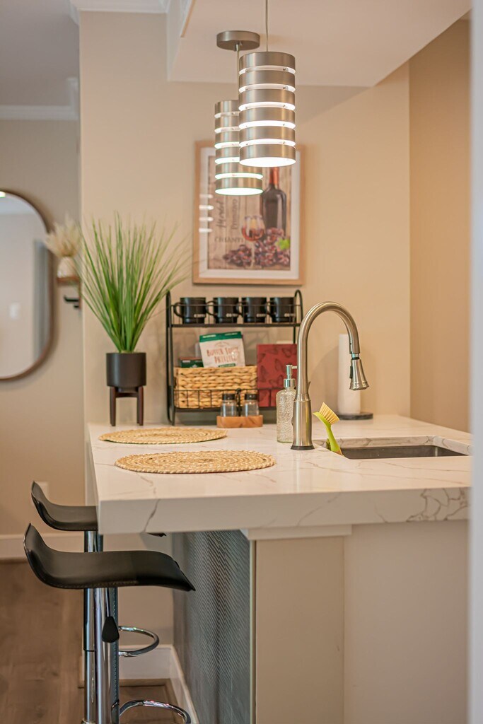 The home has everything you’d need to get started, just get your suitcase! It is a 1Bed 1Bath condo with a courtyard view balcony. The home is furnished with a large sectional couch with pillows and throw blankets, 60" Samsung TV, TV unit, In-unit Washer/Dryer, an extra full size bed, C tables, table racks, balcony chairs and decor items. It has ample storage with a walk in closet, linen closet, pantry closet, coat closet and additional cabinets in the kitchen and bathroom. The kitchen is updated with quartz marble countertops, modern stainless steel refrigerator, dishwasher, oven and microwave, glass top stove, dish rack, cutlery, cookware, dinnerware, trash bin The bathroom is updated with white Italian marble countertops, flooring and tiles, deep soak bathtub, multifunction shower head, shower curtains, shower rack. The room comes furnished with a wall mounted study table, office chair, white board, full length mirror, queen size floating bed with mattress, side tables, lamps, updated walk in closet, storage drawers and bed linens. The apartment has a great community with a pool, game room, gym, sauna, courtyard. A one time move in fee of $250/- would be required to be paid directly to the HOA at move in. Pet friendly and subject to an additional fee. The rent includes water, parking, gas, sewage and trash. You would only pay for electricity (Dominion) and WiFi (Cox). Reserved, covered parking spot in garage, right in front of the elevator comes with the unit Great location for shopping and commuting - Bus stop right outside the building, closest metro station less than 1 mile away, Route 267 and 495 are two stoplights away, 5 min walk to Harris Teeter grocery, 10min walk to Tysons Corner, Tysons Galleria, 20min drive to DC. Available to lease for 6+ months only. Subject to credit check, renters insurance and security deposit worth 45 days rent (or lower if better credit score). This listing is available for immediate move in April 2026. If you’re genuinely interested, kindly request you to provide details of your inquiry - move in time frame, length of lease, total number of occupants (including pets) and little about yourself, thank you!