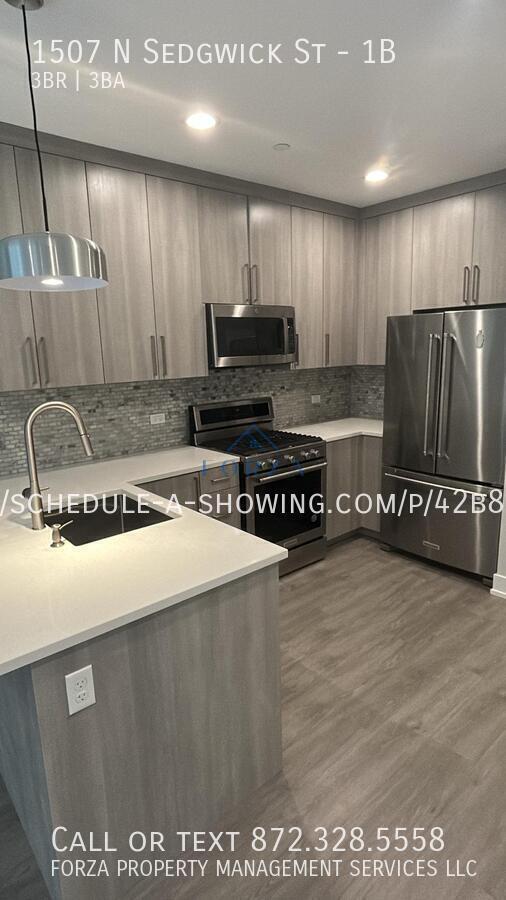 Modern 3-Bedroom, 3-Bath Duplex in Old Town! Welcome to this spacious and stylish 3-bedroom, 3-bath home in the heart of Chicago's desirable Old Town neighborhood. This residence offers a bright, open-concept layout with high ceilings, hardwood floors, and modern finishes throughout. The gourmet kitchen features stainless steel appliances, sleek cabinetry, and a large island perfect for entertaining. Each of the three bedrooms is generously sized, with ample closet space, while the three full bathrooms provide comfort and convenience for family and guests alike. Additional highlights include in-unit laundry, central air, and private outdoor space. Close to public transportation, shops, dining, and all the charm Old Town has to offer, this property combines modern living with unbeatable location. Key Features: -3 spacious bedrooms -3 modern full bathrooms -Open-concept living and dining area -Stainless steel appliances & contemporary kitchen -Hardwood floors & high ceilings -In-unit laundry & central air -with secure garage parking available offsite at $250/month Perfect for those seeking comfort, style, and a prime Chicago address! Schedule a tour now!