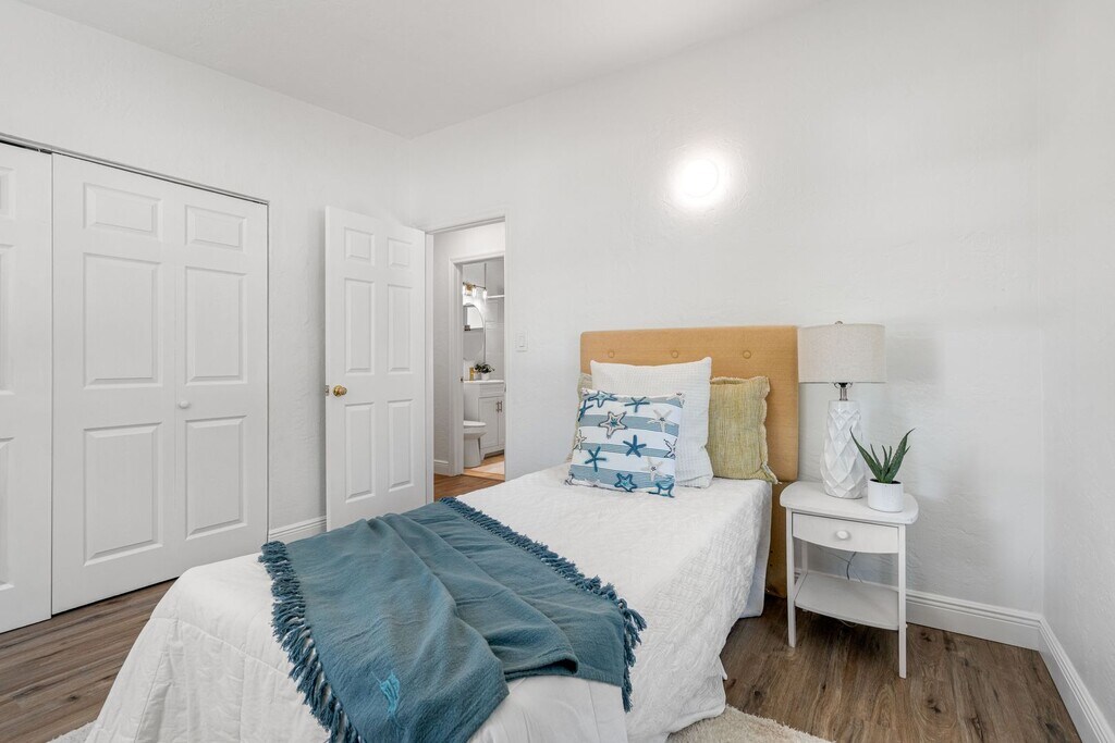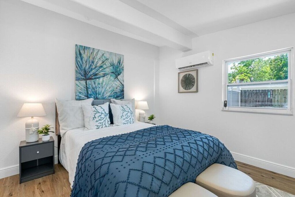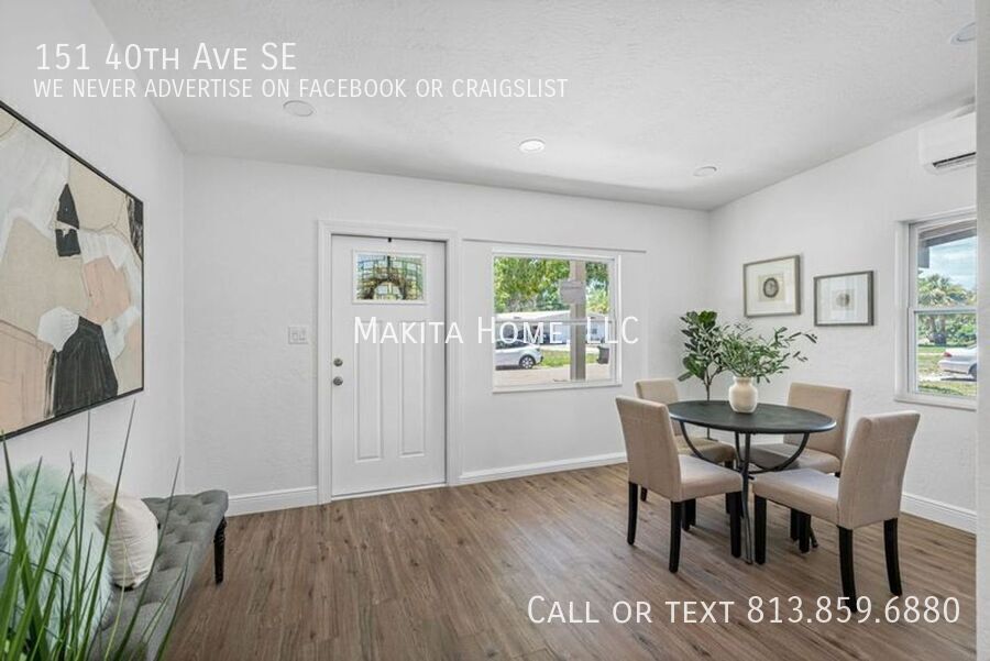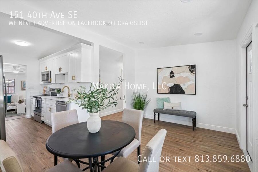 TEXT to get access to the online application or to schedule a tour. Make this charming house in prestigious Coquina Key your new home. Professionally renovated - every aspect of this home is new! Upon entering the home you step into the kitchen & dining area. The spacious dining area has lots of natural light. The gorgeous kitchen has white shaker cabinets and white quartz countertops and all stainless steel appliances. Pass through the kitchen to enter the living room again with lots of natural light. A door from living room leads outside to the fenced back yard and patio. Great for grilling or just relaxing and enjoying the shaded back yard Bedrooms are a split floorplan , with the master bedroom off the living room. Master bedroom has a private bathroom with large step in shower. The 2nd and 3rd bedrooms are located on the other side of house. Both rooms share a hall bathroom with a tub & shower combo. Energy efficient mini split AC units in all living spaces and bedrooms. Hooks ups for a washer and dryer in the utility room House was staged for the photo shoot, but the property will be rented without furniture. Conveniently located just south of downtown St. Pete, near shopping and restaurants. Easy access to I-275, Skyway Bridge, St. Anthony's Hospital. And only 20 minutes to world class beaches All Makita Home residents are enrolled in the Resident Benefits Package (RBP), which includes renters & liability insurance, HVAC air filter delivery, on-demand pest control, and more (details available upon application).