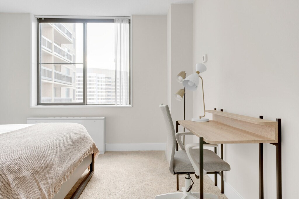 Similar space, but different These photos are of a similar space and style to this apartment. They’re intended to give you a sense of Blueground’s design style. Exact furniture and layout will be different. Be the first to rent! Discover the best of Arlington, with this one bedroom apartment in Crystal City. It’ll be easy to simply show up and start living in this fashionably furnished apartment with its fully equipped kitchen, lovely living room, and our dedicated, on-the-ground support. (ID #WDC9084A) The advertised rate of $2,810/month is the lowest available price, based on a 12 month(s) stay with a move-in date of March 14, 2026. Rates vary depending on the duration of stay, season, and other parameters. For exact pricing and additional pricing components, please visit our website and enter your desired move-in and move-out dates. The rate is applicable when billed upfront; it can be higher if billed in multiple payments. Brokers are welcome to reach out. Were you looking for an unfurnished lease? Try Blueground instead and upgrade from unfurnished to furnished living: - Furnished at rates comparable to unfurnished - No setup or furniture costs - save thousands - Move-in ready - save time, just bring your suitcase Designed with you in mind Thoughtfully designed with bespoke finishes, modern furnishings, and a fully equipped kitchen, you’ll enjoy that “I’m home” feeling with this Blueground apartment. Whether you’re lounging in your stylish living room streaming the latest and greatest entertainment on the smart TV or premium wireless speaker, or getting some well-earned rest on the superior quality mattress with luxury linens, you’ll fall in love with everything this Crystal City apartment has to offer. This apartment also offers in-apartment laundry. Amenities Building amenities unique to this one bedroom apartment include an on-site: - Doorman - Dryer - Elevator - Washing machine - Parking Arrival and ongoing support The entire apartment is yours to enjoy! Throughout your stay, you’ll have access to our Client Experience team through the Blueground App. You can schedule additional cleanings, submit maintenance requests, and view our neighborhood recommendations with just a few taps. We’ll share all details upon confirmation of your stay. Ideally Located This furnished apartment is located in Crystal City in Arlington, Virginia -- just outside of Washington DC. This dynamic neighborhood is home to many office buildings, including the headquarters of the United States Marshals Service, various Department of Defense offices, and even satellite offices for The Pentagon. Crystal City is also the location for Amazon's upcoming HQ2 project. In addition to being a business hub, the area is also known for its hopping dining and nightlife scenes. Crystal City is served by the Washington DC Metro's Blue and Yellow lines for easy access to the city. Other things to note Photos are from a similar property. This Blueground apartment has flexible lease options, allowing you to book it for six months, a year, or more. Parking is offered based on availability and is subject to a fee. [SI]
