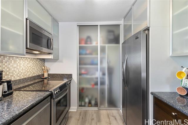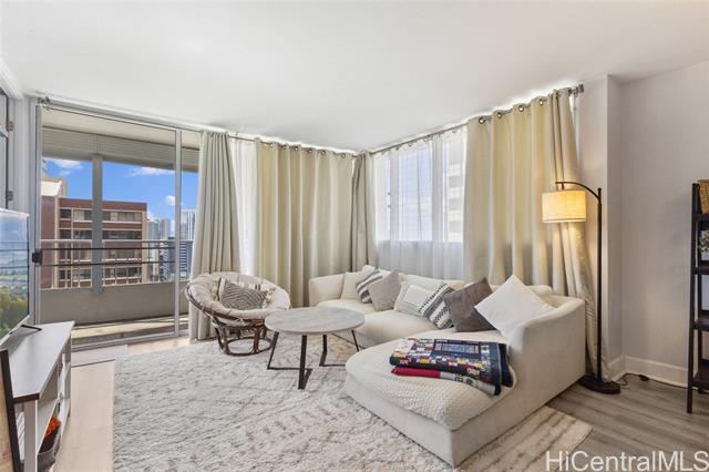 This rare corner-end 2Br/2Ba condo unit has been tastefully upgraded, move-in ready! A sufficient floor plan with an open lanai to enjoy the brilliant colors of the city light views. Improvements include wood floors, kitchen granite counter with custom cabinets, refinished shower walls and many more to appreciate. This condo comes with 1 covered assigned stall and there are secured areas for bicycles and surfboards. Sky tower apts is a secured, well maintained/well managed residential condo bldg, plenty of guest stalls, high owner occupancy and short convenient access to freeway access, hospitals, downtown Honolulu, great shops and eateries in nearby Kaka'ako, parks, weekly farmer's market, performing art centers, any more more essentials in the metro Honolulu/Punchbowl neighborhood. This rare corner-end 2Br/2Ba condo unit has been tastefully upgraded, move-in ready! A sufficient floor plan with an open lanai to enjoy the brilliant colors of the city light views. Improvements include wood floors, kitchen granite counter with custom cabinets, refinished shower walls and many more to appreciate. This condo comes with 1 covered assigned stall and there are secured areas for bicycles and surfboards. Sky tower apts is a secured, well maintained/well managed residential condo bldg, plenty of guest stalls, high owner occupancy and short convenient access to freeway access, hospitals, downtown Honolulu, great shops and eateries in nearby Kaka'ako, parks, weekly farmer's market, performing art centers, any more more essentials in the metro Honolulu/Punchbowl neighborhood.