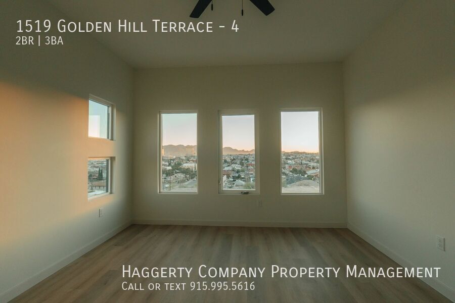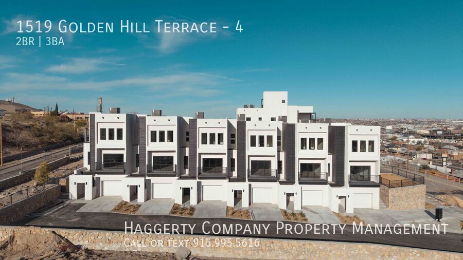Golden Hill Townhomes. Choose luxury with this brand new modern refrig a/c townhome featuring 2 bedrooms, 2.5 baths, 2 car garage and located in a great location right up against the Franklin Mountains! Enjoy amenities such as laundry room, storage room, balcony, quartz counters, and fireplace. Open living areas, large bedrooms, access to private dog park and gorgeous views are just some of the very many benefits that are offered. Conveniently located close to UTEP, 5 Points Entertainment District, Downtown and the Medical District on Murchison. Residents are enrolled in the Resident Benefits Package (RBP) which includes liability insurance, credit building, up to $1M Identity Theft Protection, HVAC air filter delivery, move-in concierge service making utility connection and home service setup a breeze during your move-in, our best-in-class resident rewards program, and much more! 2 Car Garage In Unit Laundry Room Pets Allowed With Owners Permission Quartz Countertops Refrigerated A/C Storage Room