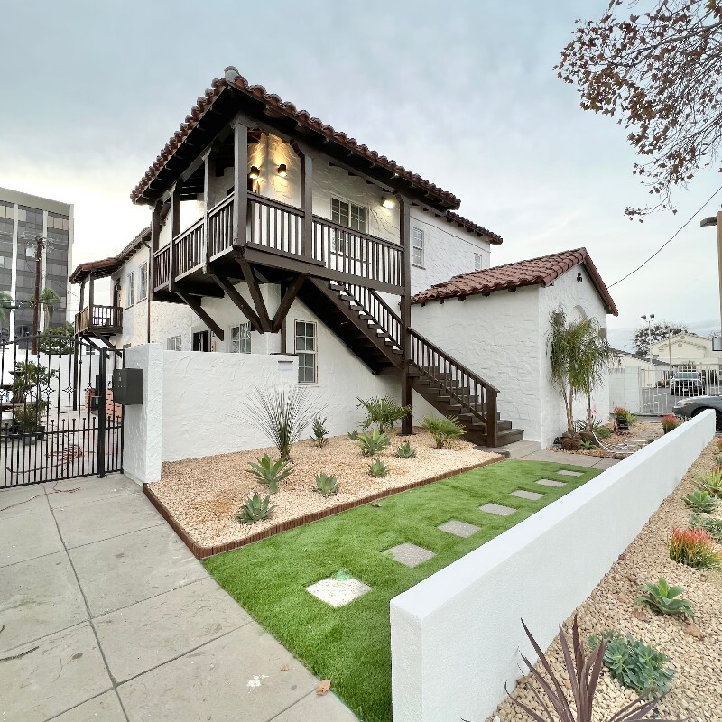 Property Id: 2327568 INQUIRIES | TEXT/ CALL : Inspired by Mediterranean and Spanish Revival-style architecture and enhanced by deep red tones and polished wood textures that contrast with stark white walls, these classic restored Santa Barbara-style rental homes are just minutes to thriving Downtown Santa Ana. 1524-1530 North Sycamore Street, located in the heart of Santa Ana’s historic Willard neighborhood, features two side by side, four-unit, two-story low-rise buildings with Santa Barba style architecture. This charming, gated community features a calming water fountain in the courtyard, private entryways, balconies, red tile roofs, and remote-controlled garage parking. Carefully restored and designed by a renowned LA designer, these 1920s vintage luxury rental homes feature keyless entry door locks to spacious one bedroom and two-bedroom floor plans with arched entry ways to newly renovated kitchen and bathrooms. The kitchen boasts sparkling white stone quartz countertops with brand new self-closing cabinetry and high-end Samsung stainless-steel refrigerators with matching gas cooktop with oven and microwave. Stacked washer and dryers included inside each rental home with porcelain tiled bath tubs, and glass shower doors and separate guest bathrooms. Each rental homes also includes central A/C cooling and heating with recessed lights with luxury style remote control blinds and distressed wood plank floors. Minutes off the 5 Freeway on the 17th Street exit and nestled in the historic Willard area of Santa Ana and adjacent to French Park - an area known for its Victorian homes. The community is minutes to Downtown Santa Ana - the rapidly gentrifying area known for its eclectic eateries and elevated dining, fantastic night life, shopping and a host of other activities. Downtown Santa Ana, also called Downtown Orange County, is the historic city center of Santa Ana and the county seat of Orange County.