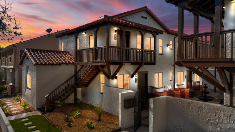 Property Id: 2359700 Inspired by Mediterranean and Spanish Revival-style architecture and enhanced by deep red tones and polished wood textures that contrast with stark white walls, these classic restored Santa Barbara-style rental homes are just minutes to thriving Downtown Santa Ana. 1524-1530 North Sycamore Street, located in the heart of Santa Ana’s historic Willard neighborhood, features two side by side, four-unit, two-story low-rise buildings with Santa Barba style architecture. This charming, gated community features a calming water fountain in the courtyard, private entryways, balconies, red tile roofs, and remote-controlled garage parking. Carefully restored and designed by a renowned LA designer, these 1920s vintage luxury rental homes feature keyless entry door locks to spacious one bedroom and two-bedroom floor plans with arched entry ways to newly renovated kitchen and bathrooms. The kitchen boasts sparkling white stone quartz countertops with brand new self-closing cabinetry and high-end Samsung stainless-steel refrigerators with matching gas cooktop with oven and microwave. Stacked washer and dryers included inside each rental home with porcelain tiled bath tubs, and glass shower doors and separate guest bathrooms. Each rental homes also includes central A/C cooling and heating with recessed lights with luxury style remote control blinds and distressed wood plank floors.
