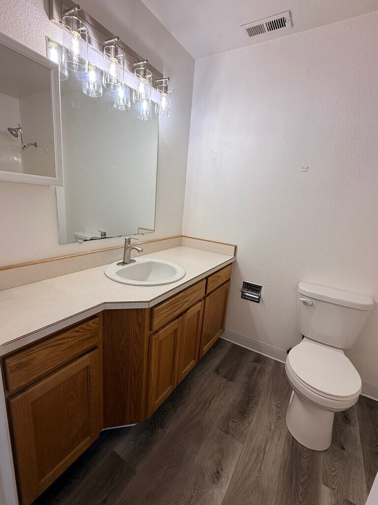 All new flooring in this spacious and bright duplex at end of cul de sac, with lovely views. Large master bedroom features walk-in closet, a patio accessible via sliding door, and an ensuite bathroom. The living room offers ample space for relaxation and entertainment, while the kitchen is equipped with essential appliances including a gas range, dishwasher and refrigerator. Bathrooms are fitted with combination tub and shower. Huge downstairs bonus room with laundry closet (washer & dryer included) connects to the 2-car garage with extra storage. Central heat and air conditioner for year-round comfort, with Nest thermostat for better efficiency. Recent upgrades/improvements include all flooring, bedroom and front porch lighting, roof, exterior paint, garage door and opener, backyard deck, and SmartHome upgrades (thermostat, electric door lock, Ring doorbell, security camera). Owner pays for water, sewer and basic yard maintenance- renter pays for all other utilities. No smoking or vaping on property. No pets. If submitting application via listing site, additional information may be required (no additional fees if screening paid via listing site)- direct applications will require a $47 charge paid directly to screening company. After approval and before occupancy will be granted, tenant must supply all the required move-in funds, including the security deposit, first month's rent, and any other additional deposits and fees- all tenant paid utilities must be transferred into tenant's name- evidence of renter’s insurance ($300,000 minimum) must be provided to Owner, and a lease must be executed and signed by all parties (including any co-signer). Nice southeast neighborhood offers easy access to I-5, Courtside Athletic Club, Safeway, Beehive Station Food Carts, Walmart, Winco, Rite Aid, Trader Joe's, and a variety of restaurants.