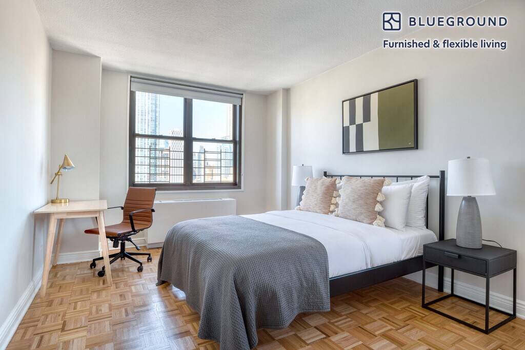 Feel at home wherever you choose to live with Blueground. You’ll love this cozy Rose Hill furnished one bedroom apartment with its modern decor, fully equipped kitchen, and bright living room with great high floor views. Ideally located, you’re close to all the best that New York has to offer! (ID #NYC1119) The advertised rate of $5,260/month is the lowest available price, based on a 12 month(s) stay with a move-in date of June 7, 2026. Rates vary depending on the duration of stay, season, and other parameters. For exact pricing and additional pricing components, please visit our website and enter your desired move-in and move-out dates. The rate is applicable when billed upfront; it can be higher if billed in multiple payments. Brokers are welcome to reach out. Were you looking for an unfurnished lease? Try Blueground instead and upgrade from unfurnished to furnished living: - Furnished at rates comparable to unfurnished - No setup or furniture costs - save thousands - Move-in ready - save time, just bring your suitcase Designed with you in mind As with any Blueground apartment, you’ll find a thoughtfully designed space complete with beautiful furniture and a fully equipped kitchen in this one bedroom property. And, thanks to our superior quality mattresses, luxury linens, and towels, you can relax knowing you’ll always feel comfortably at home. When you’re ready for some fun, you can take in the New York vibes or bring the entertainment to you with the premium wireless speaker or smart TV. Sleeping arrangements Queen Bed, 63in/160cm Amenities Building amenities unique to this one bedroom apartment include an on-site: - Doorman - Dryer in building - Elevator - Swimming pool - Washing machine in building - Pets allowed - Sauna Arrival and ongoing support The entire apartment is yours to enjoy! Throughout your stay, you’ll have access to our Client Experience team through the Blueground App. You can schedule additional cleanings, submit maintenance requests, and view our neighborhood recommendations with just a few taps. We’ll share all details upon confirmation of your stay. Other things to note Building amenities may have an extra cost. This Blueground apartment has flexible lease options, allowing you to book it for one month, a year, or more. Pets are welcome, though weight limits and breed restrictions apply and may incur fees. Brokes CYOF. We take great pride in ensuring every photo displayed is shot in our own units with our actual furnishings. That said, we regularly refresh our decor and furniture arrangement, which may differ from what’s pictured. [SI]