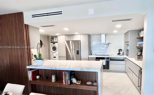 Best views on Key Biscayne overlooking Skyline, bay and Atlantic Ocean. Recently updated unit. Seasonal Rental Only.