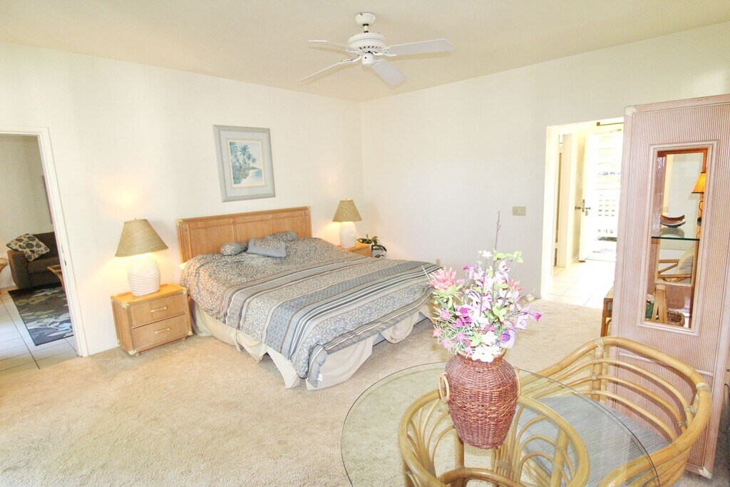 This 2 bedroom, 2 bathroom, furnished condo is located at the Grand Champions complex in sunny Wailea. First-floor, bright end unit with private entrance and private double lanai overlooks a tropical garden. A quiet, permanent resident couple lives upstairs. Abundantly furnished with 2 flat panel TV's, tinted windows, window coverings on all windows, plenty of storage, multiple dining areas, and extras for your beach/pool needs. New washer/dryer and ceiling fans in the living room and both bedrooms. Second bedroom is a suite with a separate entrance, full bath, mini fridge and counter space with a microwave. Both bedrooms have premium king size beds. The main bathroom has a tub and separate stand up shower. Grand Champions AOAO supplies water, sewer, trash pick-up, cable TV, and bulk internet speed up to 300 Mbps. Tenants are responsible for the electricity. There is one designated parking space located directly in front of the unit. Grand Champions is located in the heart of the Wailea. It is nestled between the championship Old Blue Golf Course and the award winning Wailea Tennis Center. Lush tropical gardens and swaying palm trees surround the units, two swimming pools, two Jacuzzis and four gas BBQ grills are available for residents and their guests to enjoy. Shopping, dining and other amenities are conveniently located within walking distance. Beautiful Wailea beaches are just a short drive away or a short walk from the property. Twelve month lease preferred. No pets please. Tenants are required to purchase and maintain renters insurance. **This unit MAY be available before 03/01/2026. Please contact Pali Kai Rentals for details.