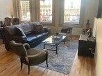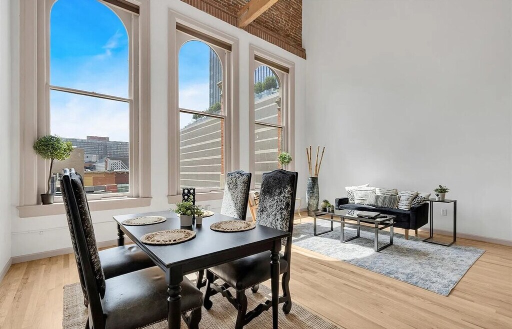 Feel at home in this stylish, newly remodeled historic loft in the heart of downtown Denver. This spacious 2-bedroom, 2-bath loft is located in the historic Denver Dry Goods Building and offers 1,740 square feet of space. The open-concept living space features exposed brick walls, soaring ceilings, and large industrial-style windows. The fully equipped kitchen includes stainless steel appliances, a coffee maker, cookware, and dining essentials. You'll also find an in-unit washer and dryer for your convenience. Building amenities include a fitness center and rooftop deck with city views. Secure, keyless entry and mail/package delivery area are available. You'll be steps from the 16th Street Mall, light rail station, and Denver’s best restaurants, coffee shops, and nightlife. Walk to the Convention Center, Union Station, or Civic Center Park in minutes. This loft offers a comfortable and stylish home base in one of Denver’s most convenient neighborhoods. The apartment has secure, keyless entry. [SI]