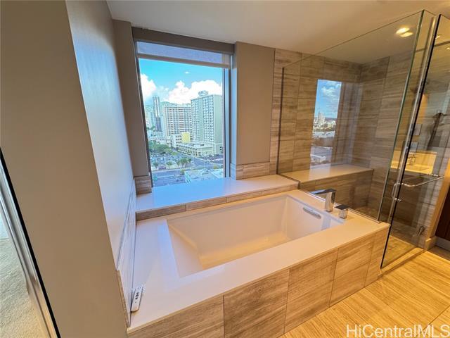 PET FRIENDLY RENTAL **Ready for immediate occupancy** The ONE Ala Moana, is a prestigious residence offering concierge service and exceptional amenities. Located next to Ala Moana Center, this exquisite building was crafted by esteemed local developers, The Kobayashi and MacNaughton Groups, marking the inception of the condominium development boom in Honolulu. This 2 bedroom unit is located on the Ewa Corner with ocean views and boasts high-end features: Impressive floor to ceiling windows, Studio Becker kitchen, Subzero refrigerator, Wolf gas range/oven, Miele dishwasher, wine fridge, elegant LVP floors, shades, and sprinklers. Resort-style amenities elevate your lifestyle. Beautifully landscaped terrace features: infinity pool, hot tub, BBQ cabanas, fire pit, playground, putting green, and walking path. Interior amenities are equally impressive, offering a world-class chef's kitchen, catering kitchen, private dining room, wine tasting room, children’s creativity room, exquisite library, theater, game room with pool table/shuffleboard/large screen TVs, guest suites, men’s & women’s locker rooms with sauna, fitness center, private massage room and salon, and a serene yoga room.
