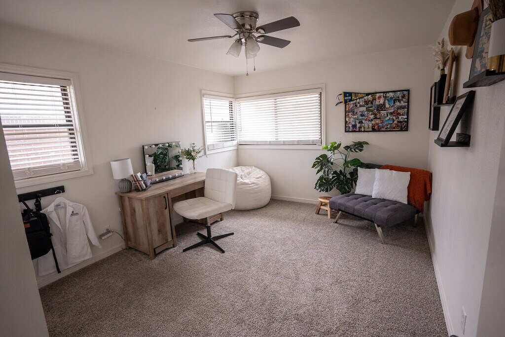 Clean and spacious 1,330 sq. ft. single-family home featuring 3 bedrooms, 1 bathroom, and a dedicated office. Bright rooms with large windows that provide abundant natural light throughout. The kitchen includes a refrigerator, oven, microwave, and dishwasher. This home also offers washer/dryer hookups, central heating and air, and updated light fixtures. Exterior features include a fenced, shady backyard ideal for relaxing or entertaining and a one-car garage with driveway parking. Rent is $1,600 per month with a $1,000 security deposit- tenant responsible for utilities. One small dog or cat considered with pet deposit. Available immediately.