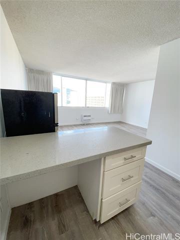 Conveniently located unit in the Kapiolani Terrace Building which has a pool, BBQ grill, pool deck, vending machine, and more! This studio w/1 bath & 1 parking has hardwood cabinets, quartz kitchen countertops, vinyl plank floors, and a window AC! You'll love the convenience of being able to walk to Ala Moana Shopping Center, Waikiki, Ala Moana Beach Park, and much more! Unit comes with access to building laundry facilities. Water/sewer & 1 parking included in rent amount. Minimum 650 credit score and combined household income of at least 3 times the rent amount is required. $20 app fee per adult applicant also required. Renter's Insurance required. No pets and no smoking. Available now! Contact Robert for showing requests and questions at or .