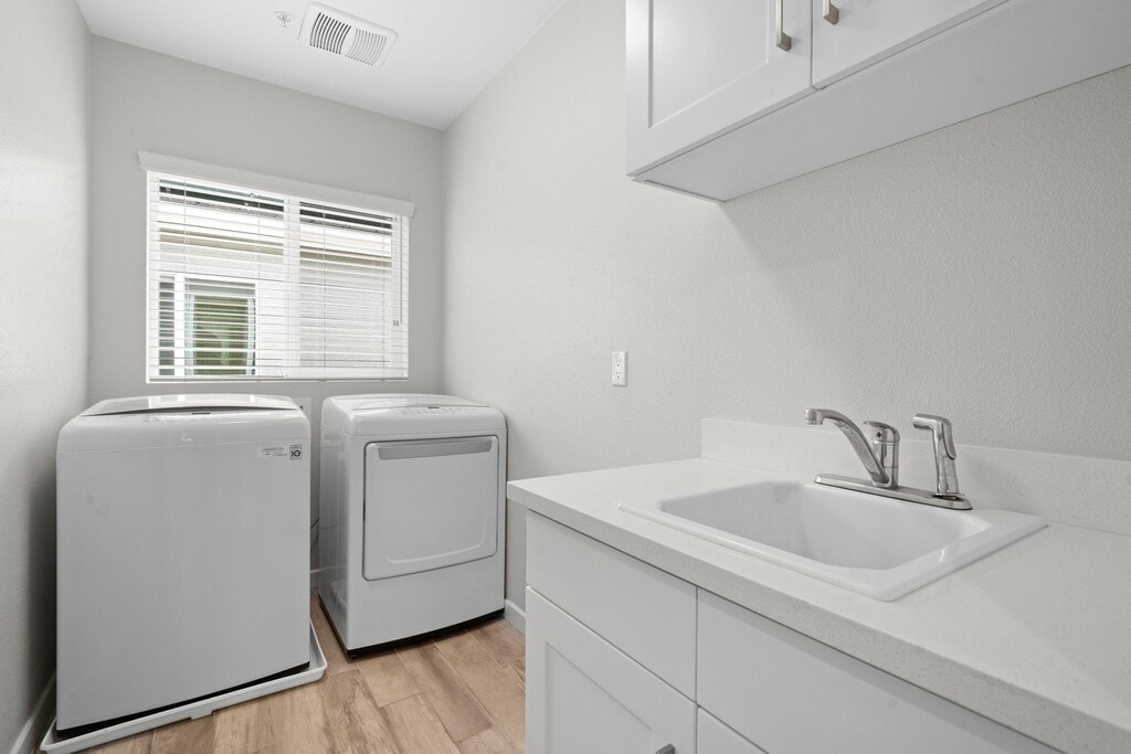 This charming 4-bedroom, 3-bathroom home offers a welcoming and practical layout, ideal for everyday living and family moments. The main level features an open-concept design with warm hardwood flooring that flows seamlessly through the living, dining, and kitchen areas. The kitchen is a functional space with stainless steel appliances, ample cabinetry, and a spacious island perfect for casual meals or gathering. Large windows throughout allow natural light to flood the interior, providing lovely views of the cozy patio area. Upstairs, the home includes four comfortable bedrooms, including a master suite with a relaxing spa-like bathroom, offering a peaceful retreat. Nestled in a quiet neighborhood, this home blends modern updates with a laid-back ambiance, making it ready to be settled in and create lasting memories. Additional features include a dedicated laundry room with built-in cabinets and utility sink, central air and heat, contemporary bathrooms with dual sinks and elegant tile-work, and direct garage access for convenience. The private backyard is thoughtfully landscaped with lush greenery, a spacious patio, and low-maintenance turf perfect for relaxing, entertaining, or enjoying outdoor play. This move-in-ready property combines comfort, stylish upgrades, and a strong sense of community in vibrant Van Nuys.