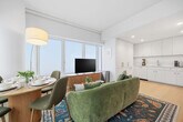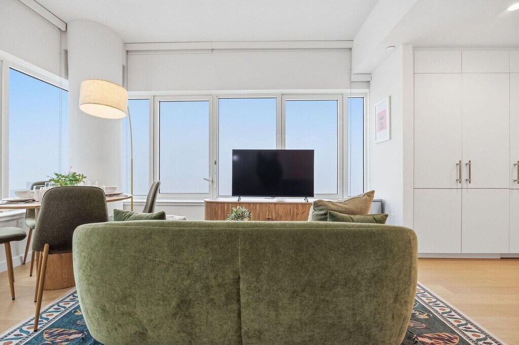 Welcome to your new home at The Dupont in Greenpoint. Experience luxurious waterfront living with stunning views of the Manhattan skyline and East River from this fully furnished 1-bedroom apartment. This apartment features a fully equipped kitchen with stainless steel appliances, quartz countertops, and sleek finishes, as well as an in-unit washer and dryer. The living area includes a Smart TV and high-speed internet. Paid parking is available in the garage or via valet. Ideally located in Greenpoint, you are steps from the waterfront esplanade, cafés, boutiques, neighborhood parks, the NYC Ferry, and the G-line station, and just a short ride to Manhattan. Enjoy city-edge living with a relaxing neighborhood vibe. Internet speeds are not guaranteed and may vary by device and location. Includes private high-speed internet, a standing desk (Uplift), a work chair (Uplift), a 34-inch ultra-wide monitor (Samsung), a microphone (Blue Yeti), a webcam (Logitech), computer speakers (Logitech), an LED streaming light, a keyboard (Logitech), a mouse (Logitech), a laptop stand, and a TOTU 16-in-1 Triple Display USB-C 3.1 Docking Station. Amenities include a heated rooftop pool and clubhouse with panoramic Manhattan skyline views, an expansive social lounge with a game room, a catering kitchen, and an event space, a state-of-the-art fitness center featuring Technogym and Peloton equipment, a yoga studio, and an infrared sauna, a coworking lounge with private meeting pods, sound-insulated Zoom rooms, and a conference space, a landscaped garden terrace with BBQ stations and an outdoor kitchen, a children’s playroom with creative play areas and themed décor, a pet spa and grooming services, a resident lounge and game area for entertainment and community events, on-site laundry, elevators, a 24-hour doorman/concierge, a bike room, storage rooms, package facilities, Wi-Fi available throughout common areas, A/C and heating in all units, and smoke and carbon monoxide alarms, and a first-aid kit. Partners reserve the right to conduct secure ID verification, background checks and request Proof of Income. Guests will have 24 hours to complete these steps. Booking confirmation is contingent upon the successful completion of these checks, as well as meeting the minimum eligibility requirements. [SI]