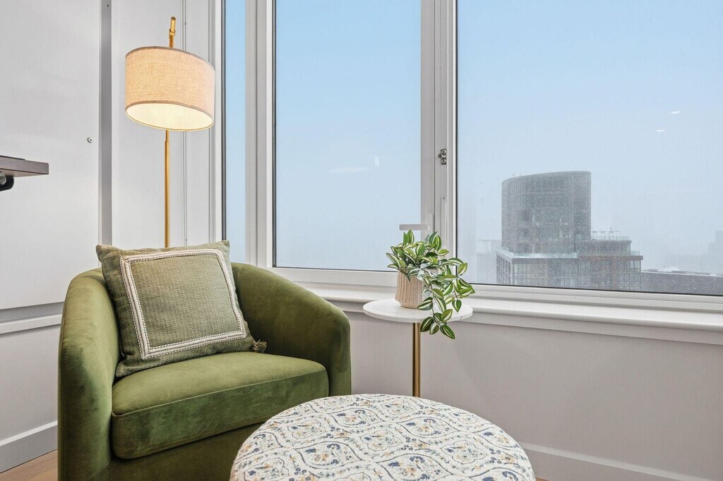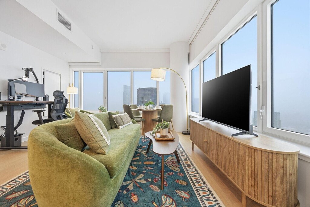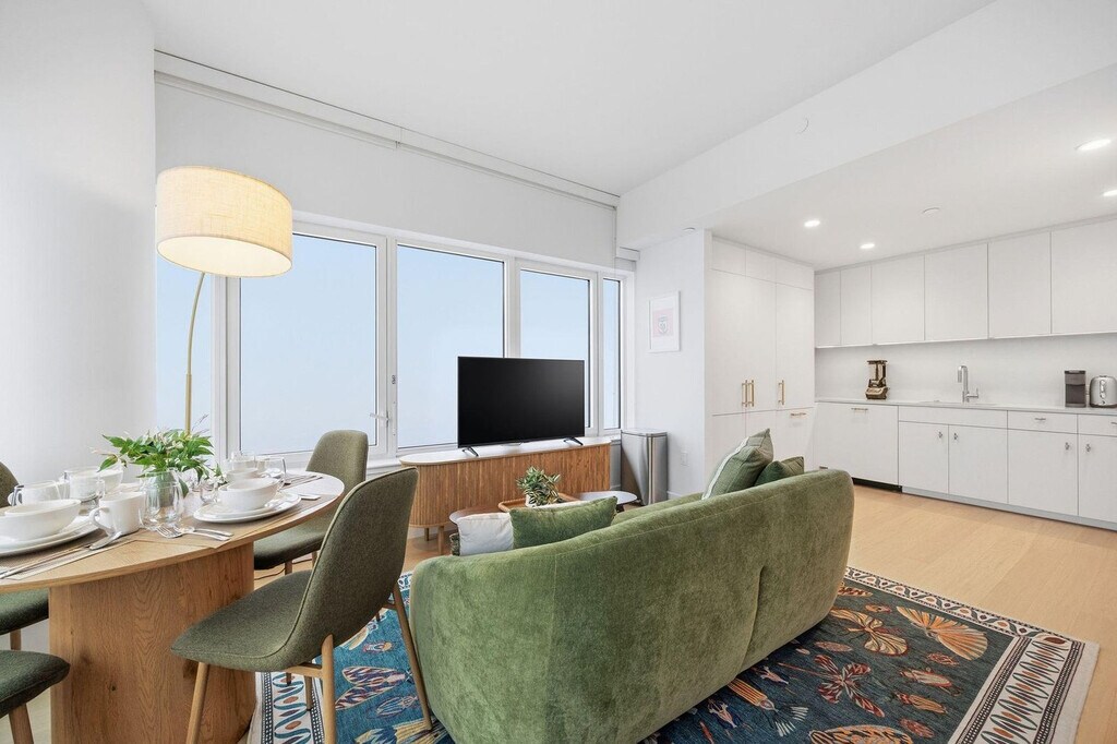 Welcome to your new home at The Dupont in Greenpoint. Experience luxury waterfront living with stunning views of the Manhattan skyline and East River from this fully furnished 1-bedroom apartment. Designed for modern remote workers and families, this apartment features a spacious king-size bed, an elegant 1-bedroom layout with generous closet storage, and a full bathroom with high-end finishes and premium fixtures. Enjoy the convenience of an in-unit washer and dryer, a living area with a Smart TV, and high-speed internet. The fully equipped kitchen boasts stainless steel appliances, quartz countertops, and sleek finishes. Amenities include a heated rooftop pool and clubhouse with panoramic Manhattan skyline views (only during the summer), an expansive social lounge with a game room, a catering kitchen, and an event space, a state-of-the-art fitness center featuring Technogym and Peloton equipment, a yoga studio, an infrared sauna, a coworking lounge with private meeting pods, sound-insulated Zoom rooms, a conference space, a landscaped garden terrace with BBQ stations and an outdoor kitchen, a children’s playroom with creative play areas and themed décor, a pet spa and grooming services, a resident lounge and game area for entertainment and community events, on-site laundry, elevators, a 24-hour doorman/concierge, bike room, storage rooms, A/C and heating, a smoke alarm, a carbon monoxide alarm, and a first-aid kit. Paid parking is available in the garage or via valet. Ideally located in Greenpoint, this apartment is steps from the waterfront esplanade, cafés, boutiques, neighborhood parks, the NYC Ferry, the G-line station, and just a short ride to Manhattan. Enjoy city-edge living with a relaxing neighborhood vibe. Internet speeds are not guaranteed and may vary by device and location. Early check-in from 9 AM – 3 PM incurs a $75 fee, early check-in before 9 AM incurs one full night’s rent, late check-in after 8 PM incurs a $50 fee, late check-out from 11 AM – 3 PM incurs a $75 fee, and late check-out after 3 PM incurs one full night’s rent. Includes a large desk, an ergonomic chair, a monitor (optional), private high-speed internet, a standing desk (Uplift), a work chair (Uplift), a 34-inch ultra-wide monitor (Samsung), a microphone (Blue Yeti), a webcam (Logitech), computer speakers (Logitech), an LED streaming light, a keyboard (Logitech), a mouse (Logitech), a laptop stand, and a TOTU 16-in-1 Triple Display USB-C 3.1 Docking Station. Partners reserve the right to conduct secure ID verification, background checks and request Proof of Income. Guests will have 24 hours to complete these steps. Booking confirmation is contingent upon the successful completion of these checks, as well as meeting the minimum eligibility requirements. [SI]
